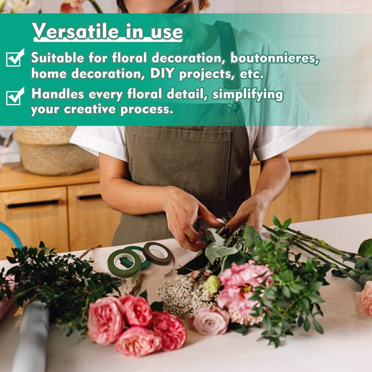 • 5 Variety Colors: Featuring Dark Green, Green, Grass Green, White, Brown, which can match very well with your flowers and leaves. Wrap around floral bouquets with this floral tape to create realistic flower stems and make a beautiful arrangement of flowers
