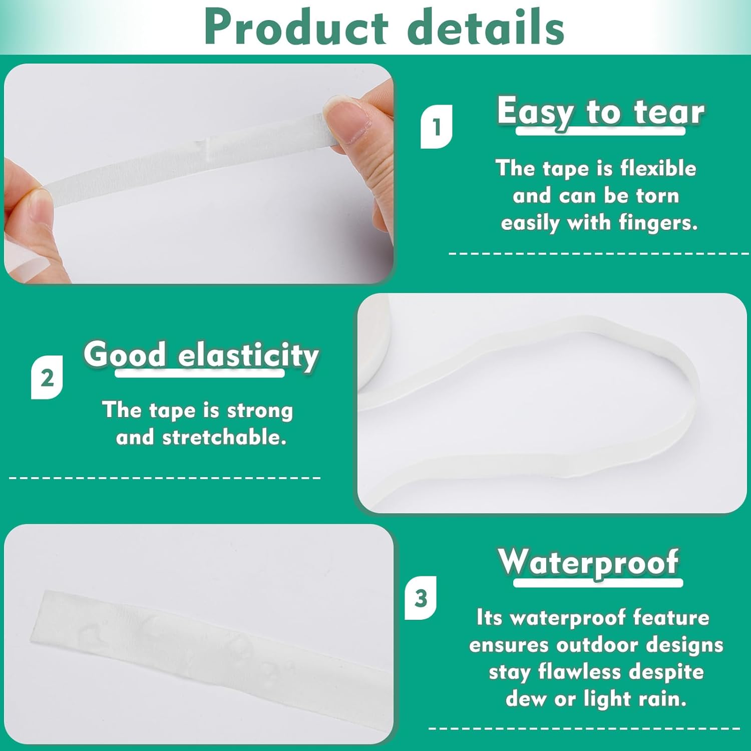 • Waterproof and Does Not Fade: Our green floral tapes still remain sturdy and long-lasting around the flower stems even if they are wrapped around the flower stems in the water. The tape is waterproof, providing maximum viscosity for a wet surface, and will not fade even when immersed in water