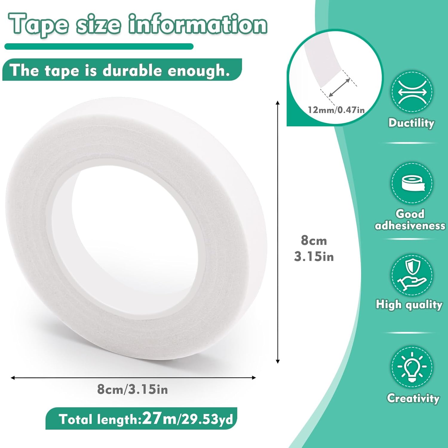 • Floral Tape for Bouquets: Dimensions: each roll is 0.47 inch (1.2)CM in width and 30 yards(27M) in length. Strong and Stretchable, it tears easily, lightweight, and flexible to use