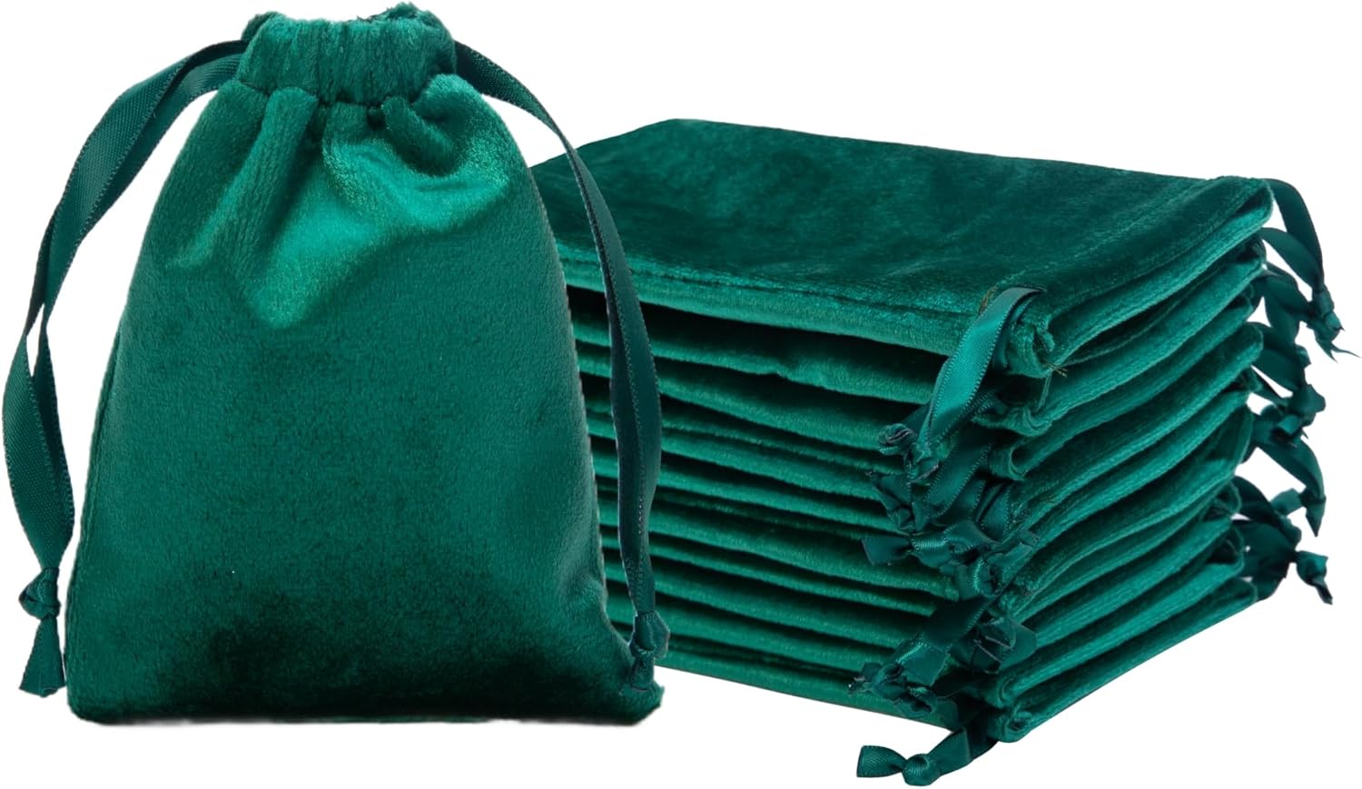 QIANF 12pcs Hunter Green Velvet Drawstring Bags 3x4 inches Mini Velvet Cloth Gift Bags Jewelry Pouches for Storage Wedding Party Favor Christmas