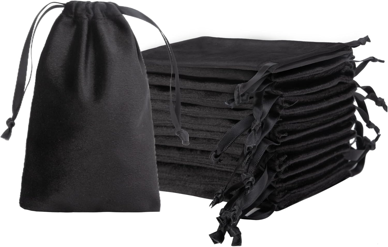 • SIZE: These small drawstring velvet pouches combine functionality with elegance. Measuring 3" x 4"/7.6 x 10cm (±0.3" error of measuring due to manual measurement), package include 12pcs reusable velvet cloth bags