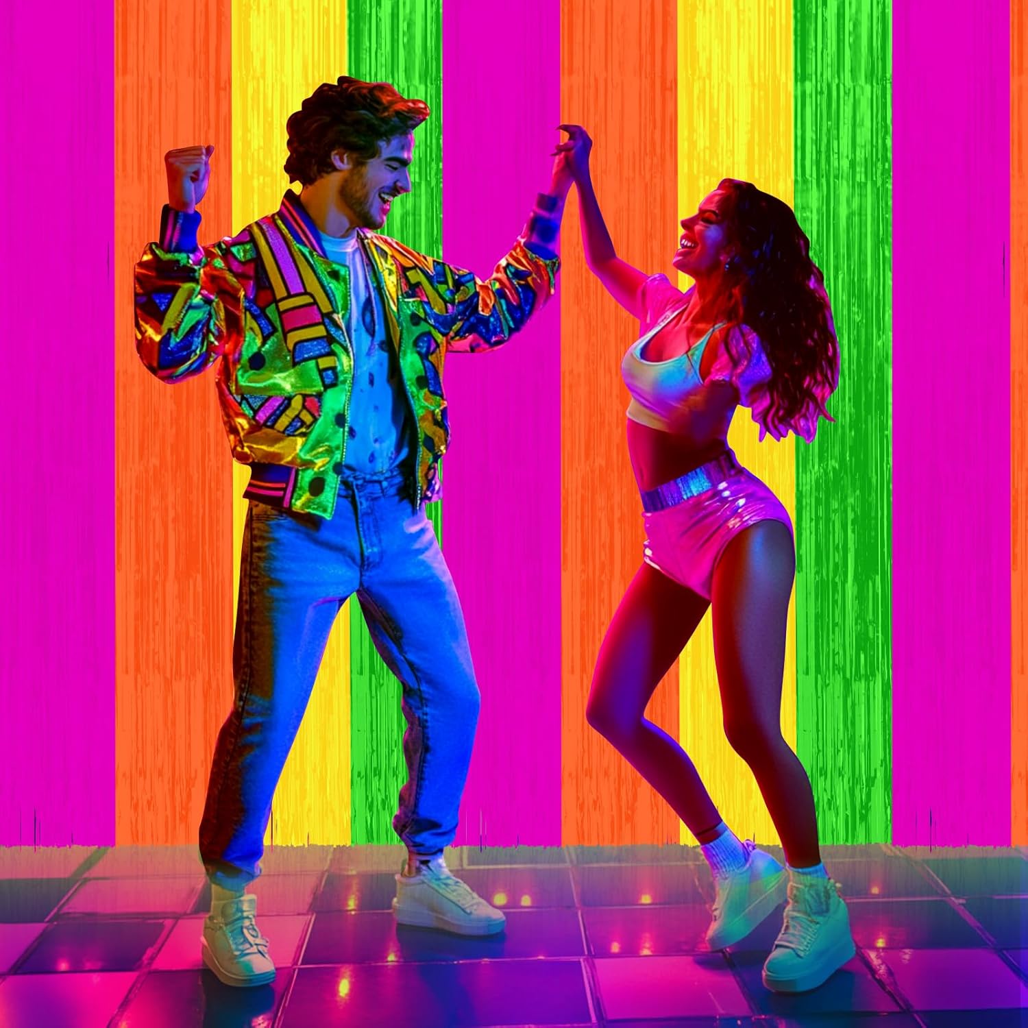 • Easy to Use: Our neon foil fringe curtains come with self-adhesive tape at the top for easy use. Simply tear off the backing and attach it wherever you desire, creating a sparkling and festive atmosphere at your party with ease