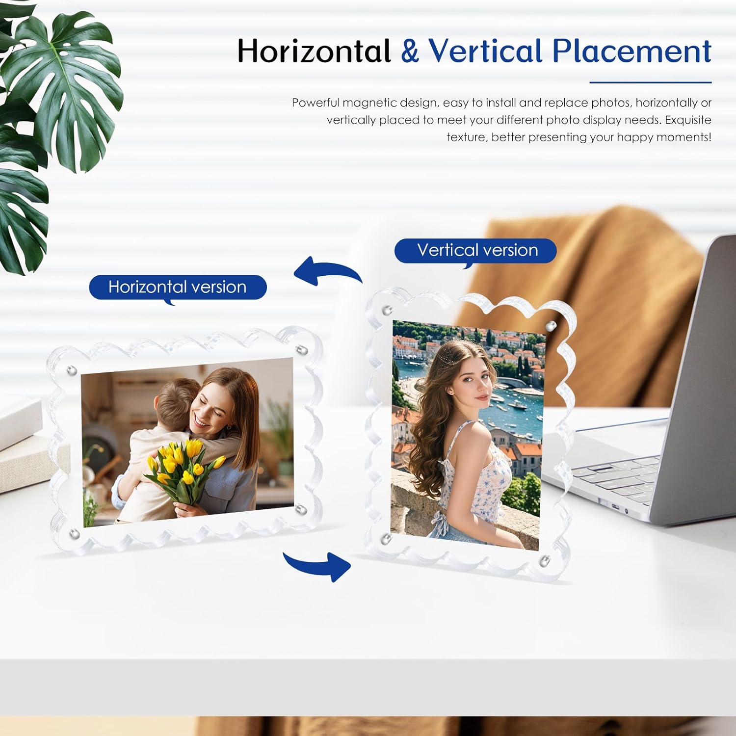 Scalloped Magnetic Picture Frame 4x6 Inch - 6Pack Clear Acrylic Photo Frame, 20mm Thick Double-Sided Magnet Design, Trendy Desktop Display for Home/Office Decor (6 Pack, 4X6)