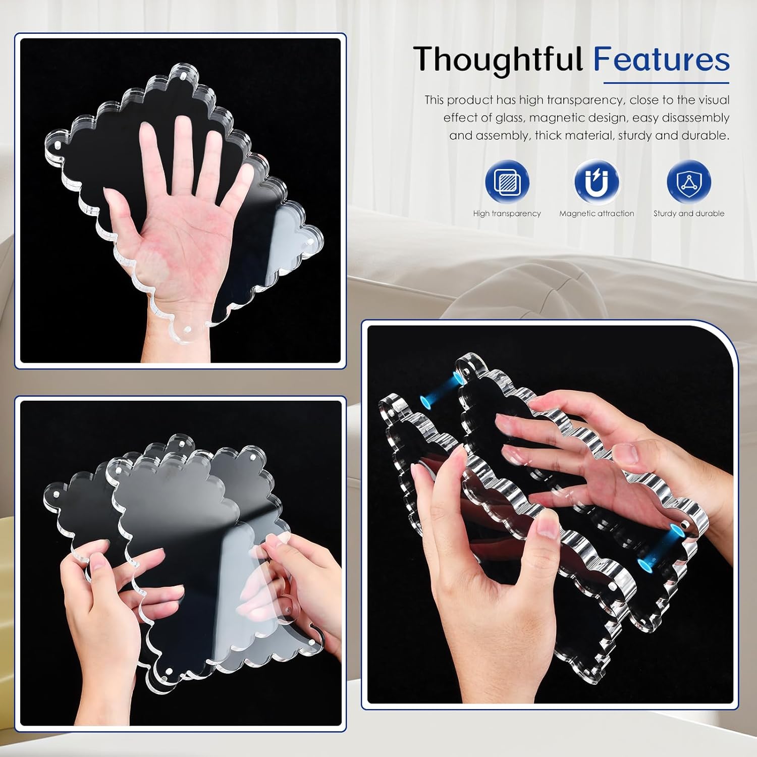 • 【Scalloped Edge Aesthetics & Versatile Display】 The elegant acrylic scalloped glass frames add modern flair with their decorative edges. Freestanding design works vertically or horizontally – no hardware needed. 12+12mm thick blocks ensure stable positioning
