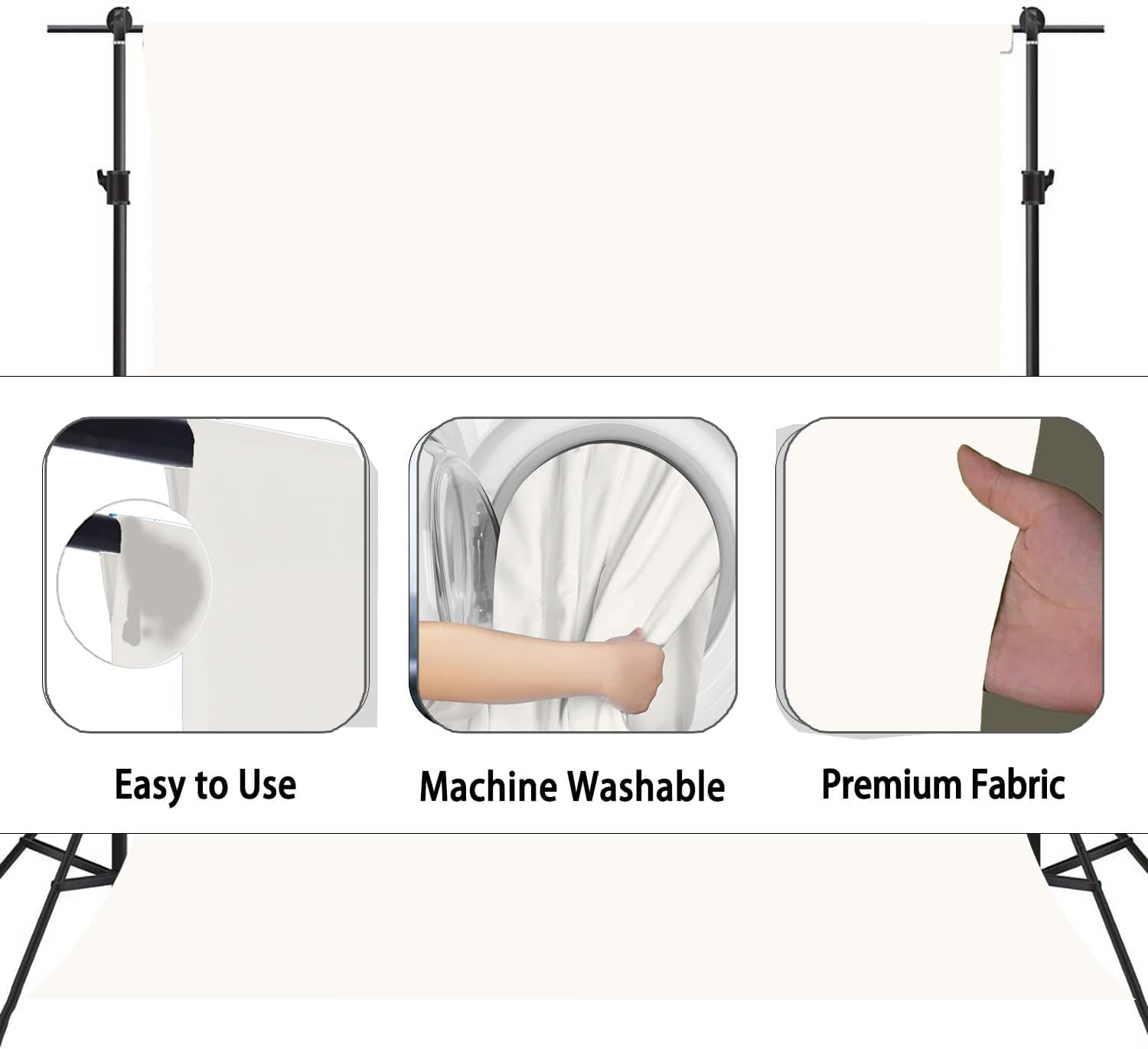 • Excellent Quality: This ivory photography backdrop is made of polyester fiber, soft and non-reflective fabric, durable, can be ironed, light weight, easy to carry, and all edges have good locking seams and are not easy to tear.