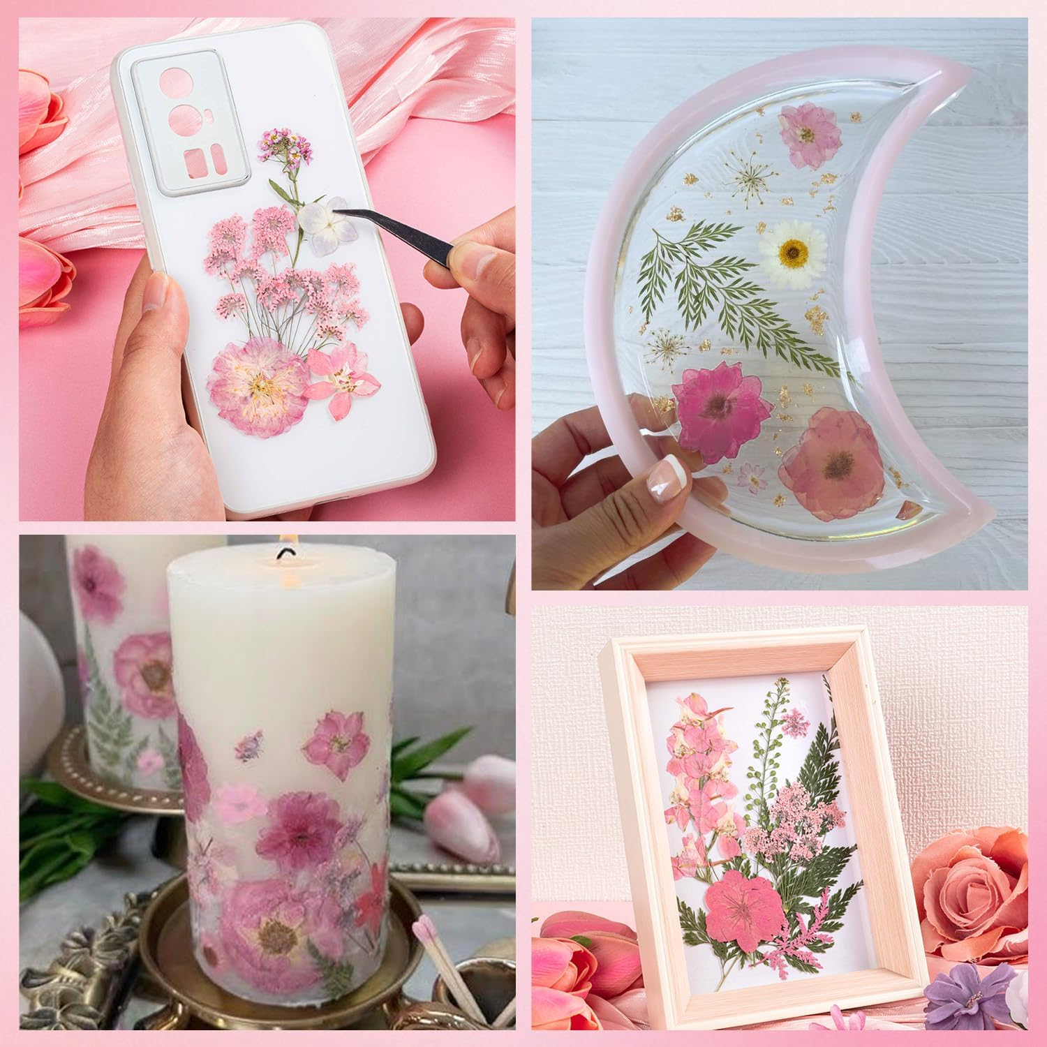 • DIY Crafts: Our pink dried flowers and leaves are mainly light light pink, suitable for valentines craft making. You can make bookmarks, greeting cards, picture frame decorations, candle making, mobile phone cases, scrapbooks with family on holiday