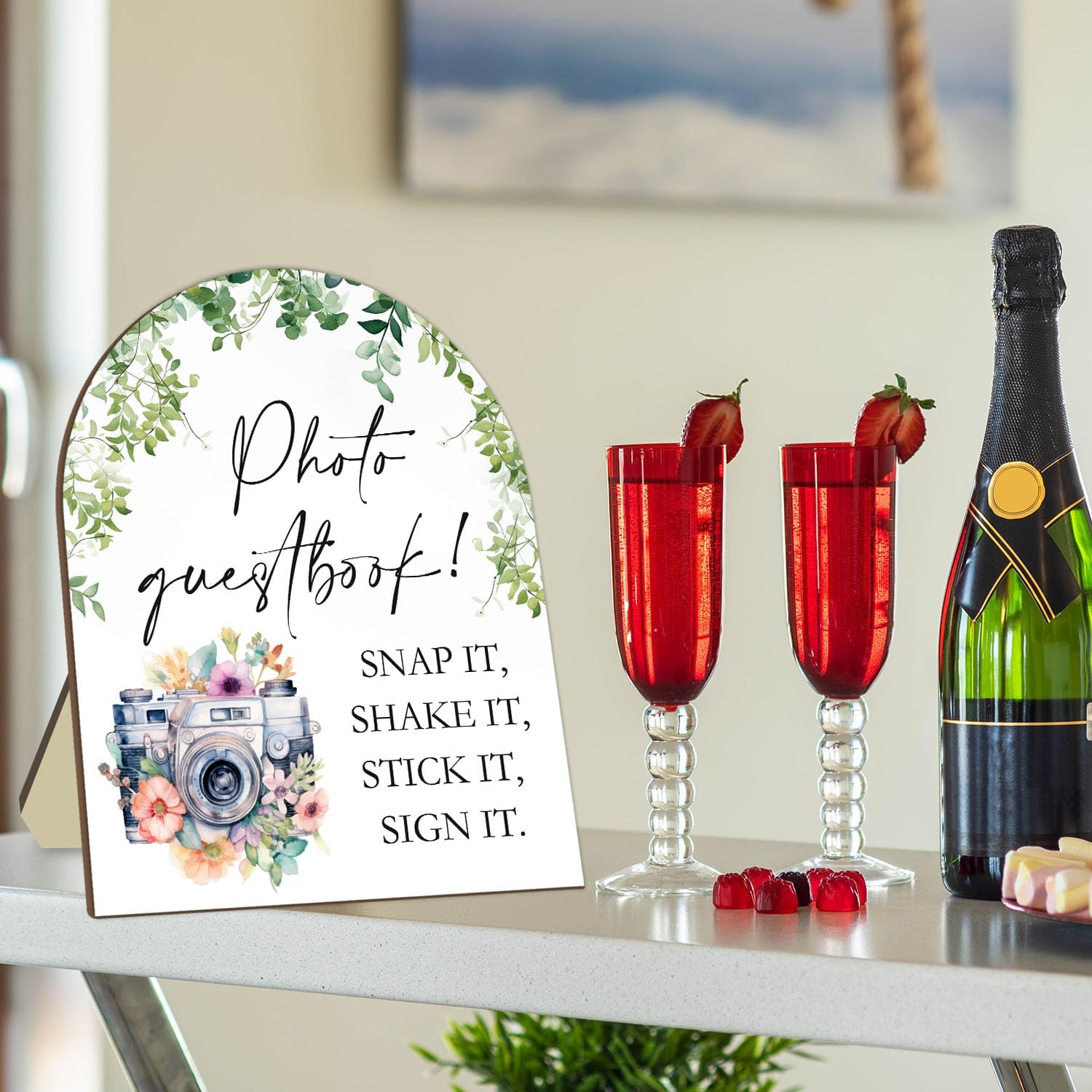 Wedding Photo Theme Desk Decor, Eucalyptus Leaf Decor Party Welcome Sign, Bridal Shower Photo Guestbook Sign, Baby Shower Supplies, Wedding Reception Decor with Stand 8 * 10In
