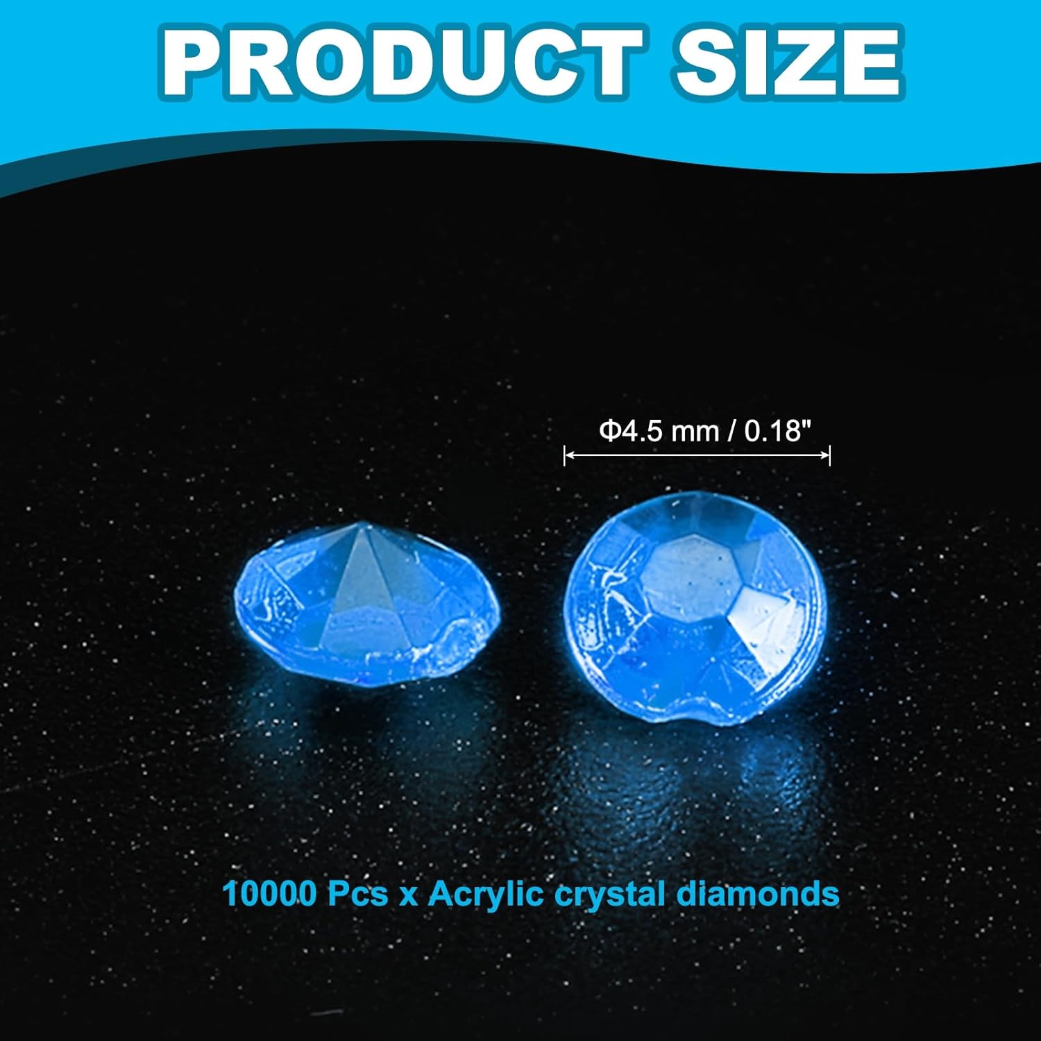 • Color: Light Blue; Material: Acrylic; Diameter: 4.5 mm / 0.18 Inch; Packing List: 10000 Pcs x Acrylic crystal diamonds
