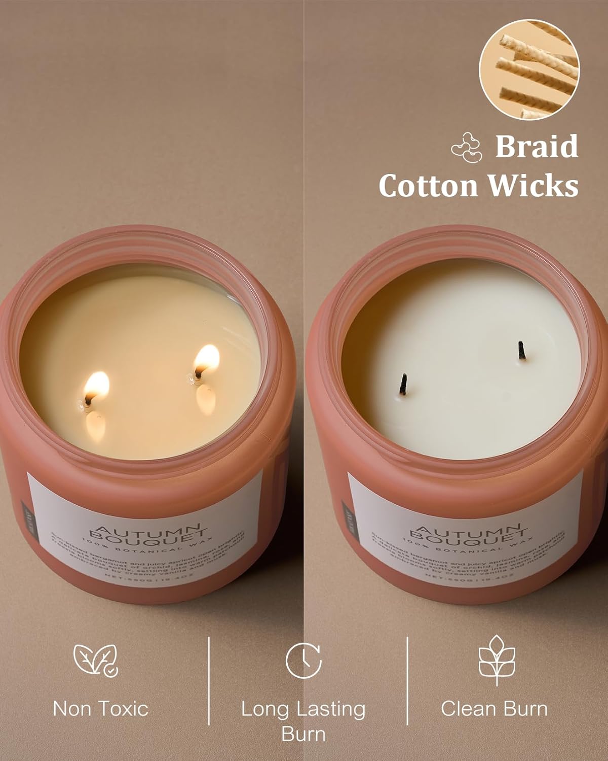 M&SENSE Fall Candle Autumn Flower Scented, Large 19.4oz Natural Soy Wax 110 Hours Burn Time Clean Non Toxic Candle Classic 2 Wicks Gifts