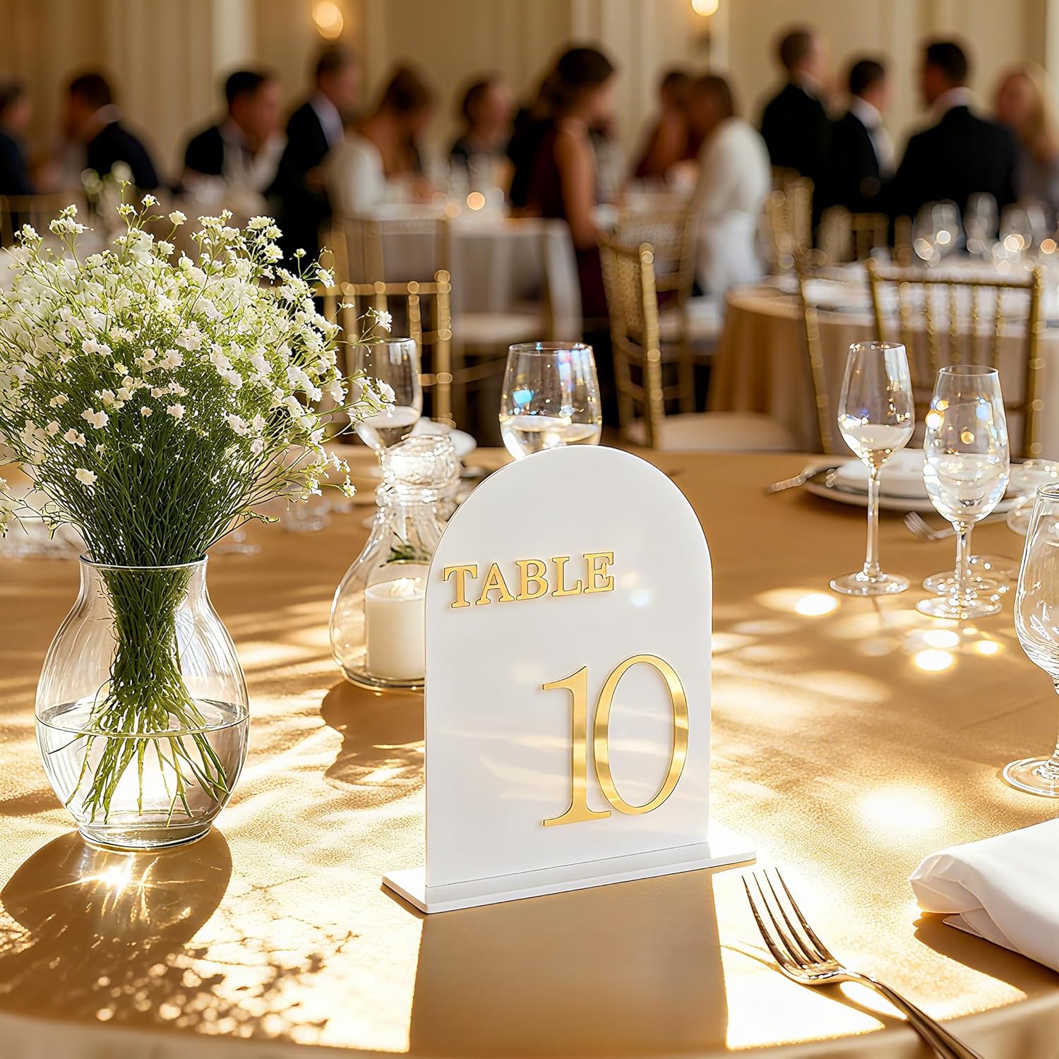 Arch Wedding Table Numbers 1-15 with Stands, 5" X 7" Double Sided Acrylic Wedding Sign Holders, Durable Non-Fading Table Number for Wedding Reception, Events, and Centerpieces