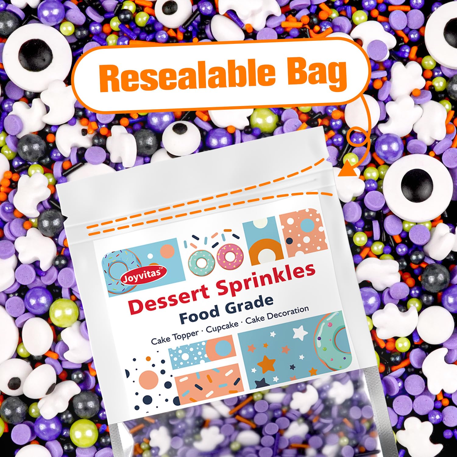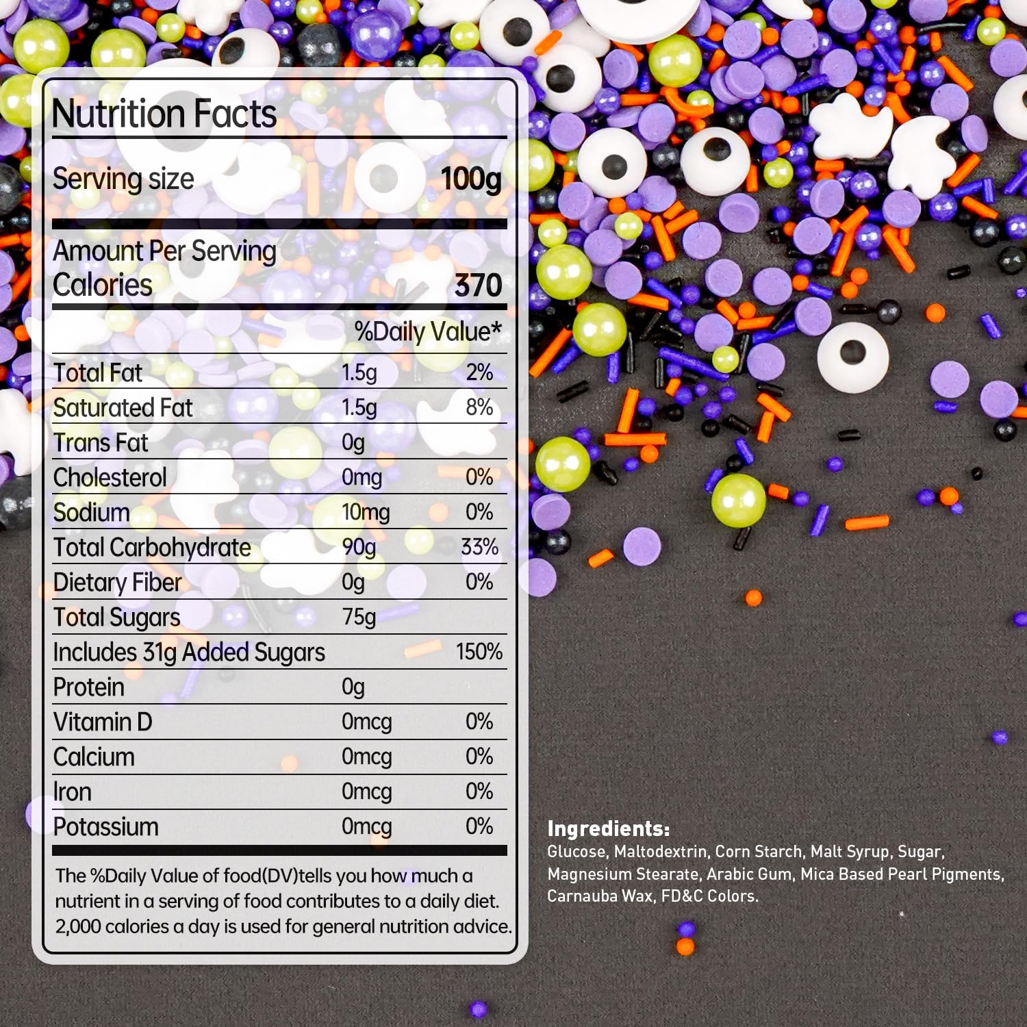 • [Food-Grade Halloween Sprinkles] Our Edible Halloween sprinkles are no gluten, no nut, no preservative, no dairy, no harmful chemical, and no-GMO. A safe, delightful treat for all—perfectly surprise for haunted parties and trick-or-treat gatherings!