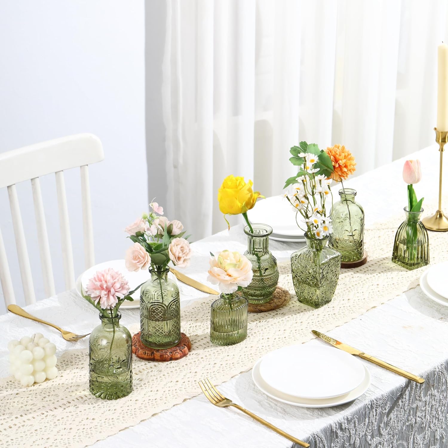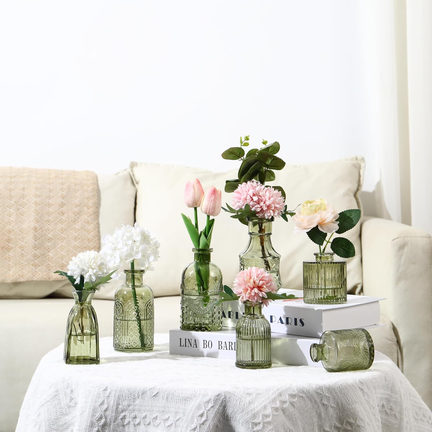 • Premium Quality: These glass flower vases are made of 100% premium Soda Lime glass, which is sturdy, leak-proof, easy to clean, and not easily broken. These vase sets have been drop-tested and are more sturdy than other glass vases. The handmade embossed pattern makes these vintage bud vases delicate and vivid