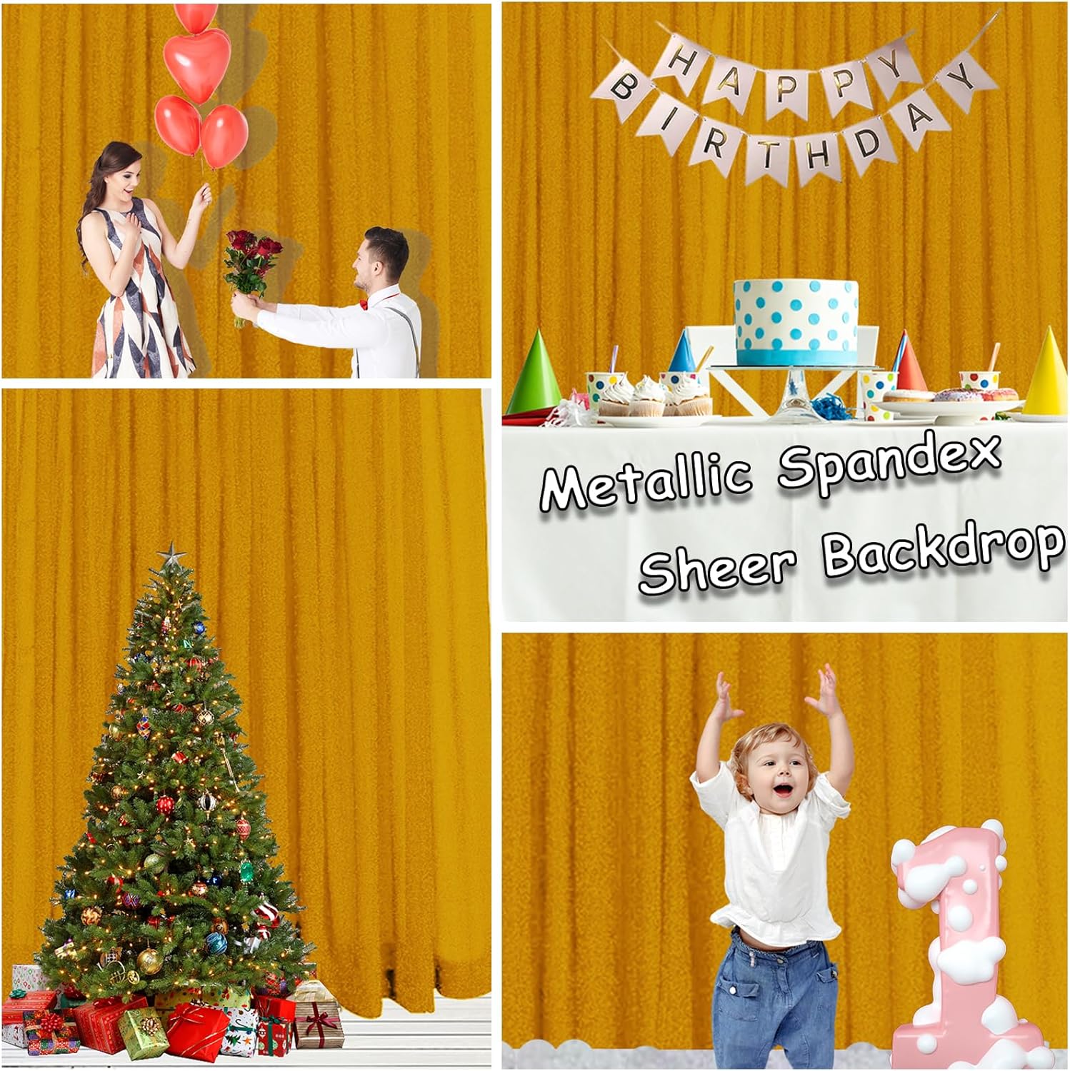 • [Stretch Backing + Shiny Polyester Thread] The gold backdrop is made of sheer fabric woven together with shiny polyester thread that has a slight stretch. The surface has a delicate metallic shimmer, which gives a high-class reflective effect when taking photos and easily enhances the splendor of the scene.