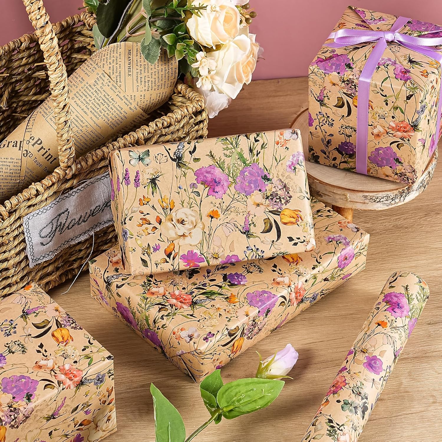 • Kraft Floral Design: Kraft garden wildflower design, will make your gift exudes charm and elegance. The flower wrapping paper make it ideal for creating a wonderful gift presentation that leaves a lasting impression.