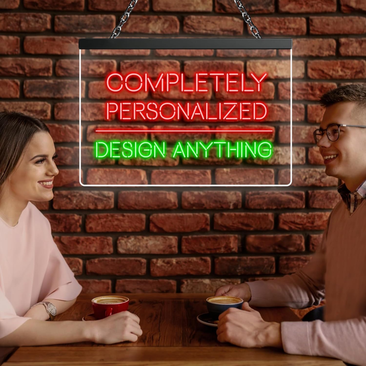 • Wide range of customizable bar signs for every space and mood. Choose from 1 or 2 color personalized neon bar signs, perfect for any custom pub sign or personalized beer sign. Available in 6 LED colors—blue, green, yellow, red, pink, and white. Each sign supports up to 2 colors, letting you personalize your home bar with the perfect mix.