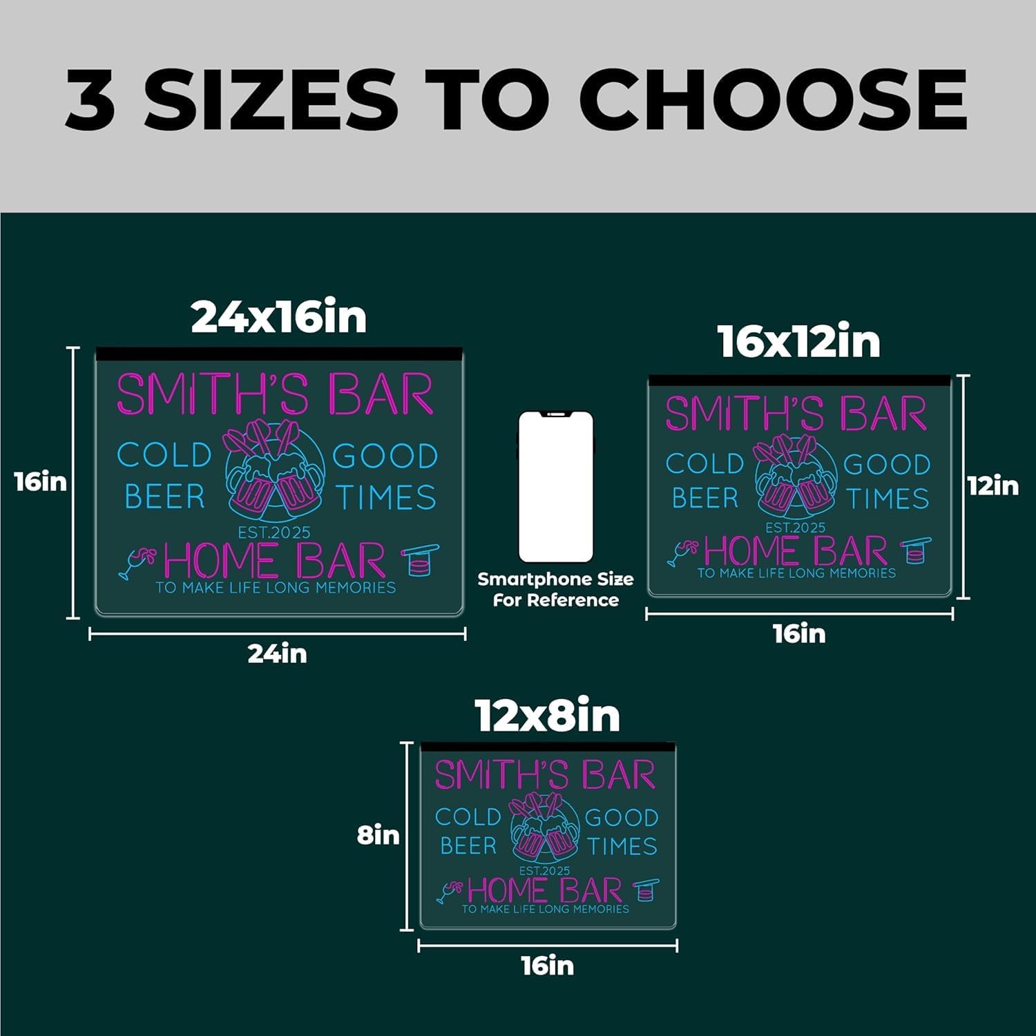 • Custom bar signs for home bar wall light up your space with flair. Custom bar signs for home bar wall light up décor with just the right LED glow. Ideal for man caves, home theaters, salons, or cafes. Handmade to impress—no design fees, perfect gift for any space. Disclaimer-The image is for color reference only. All product details are shown in the main image, and you will receive the design for final approval before we ship it to you