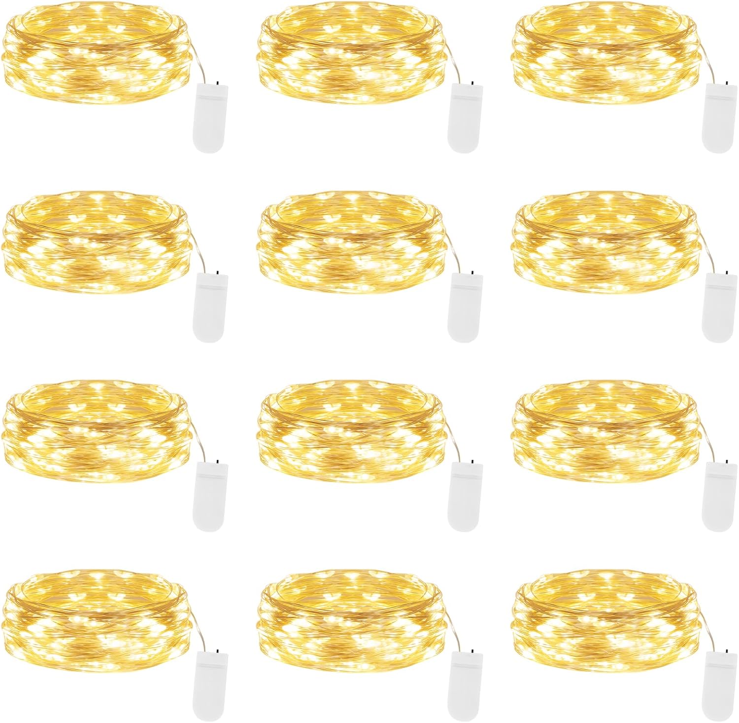 Lakumu 12-Pack Fairy Lights Battery Operated Twinkle Lights-7FT 20LEDs String Lights, Waterproof Battery Powered Firefly Lights for Crafts Bedroom Wedding Christmas Party Reception Centerpiece Table
