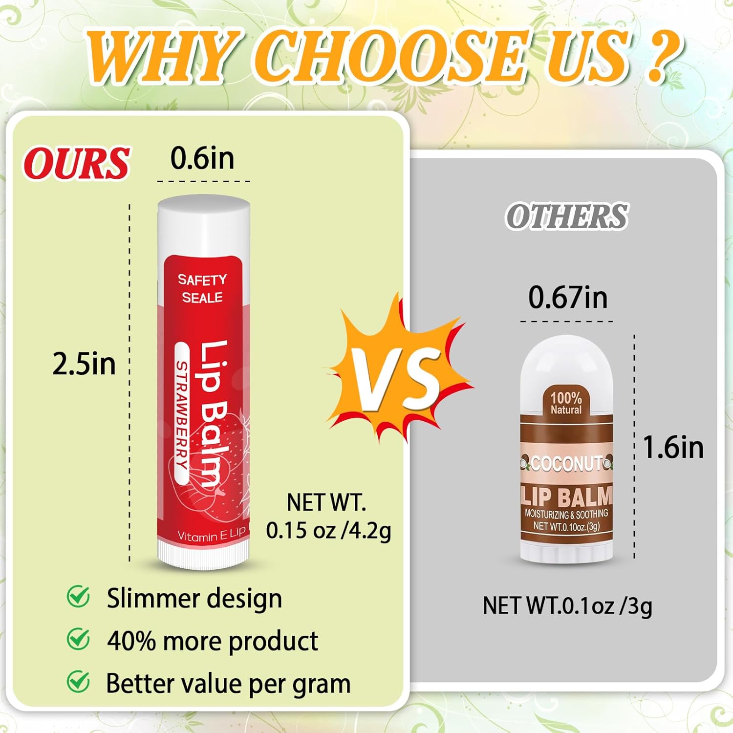 • Lip Balm 42 pack bulk 14 natural fruit plant flavors - including Lily of the Valley, mint, vanilla, rose, apple, strawberry, pineapple, peach, citrus, coconut, watermelon, grape, cherry, and mango. We cater to your preferences