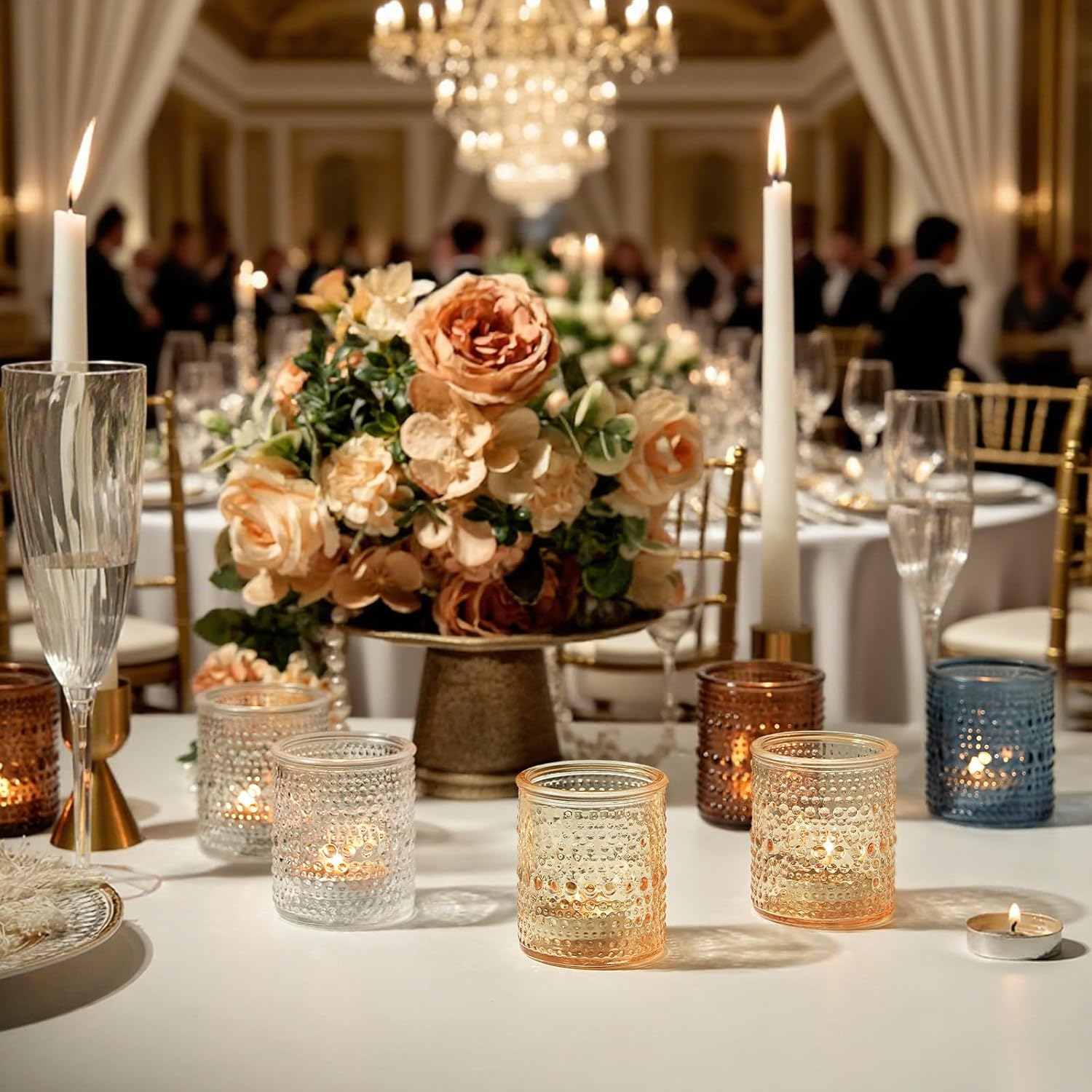 • 【VERSATILE 4-COLOR OPTIONS】— Meet every décor need: TRIRITE’s bulk set of 36 polka dot votive candle holders offers four elegant colors (clear, amber, gold, and blue) to match any theme or mood. Each candle holder measures 2.2ʺ in diameter and 2.5ʺ in height, perfect for tealights, votives, or flameless candles. The uniform size ensures a cohesive look while the playful polka dots add whimsical charm.