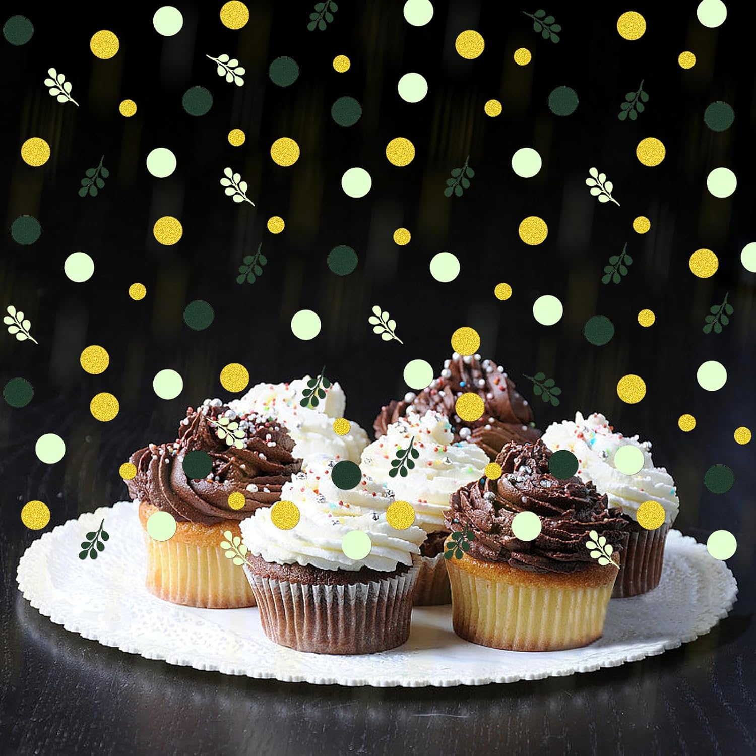 • Elegant Color Matching-Great birthday and baby shower party decorations.The round dots shaped green confetti package matched the green gold dots and sage green eucalyptus leaf, which make the whole party vigorous and energetic.