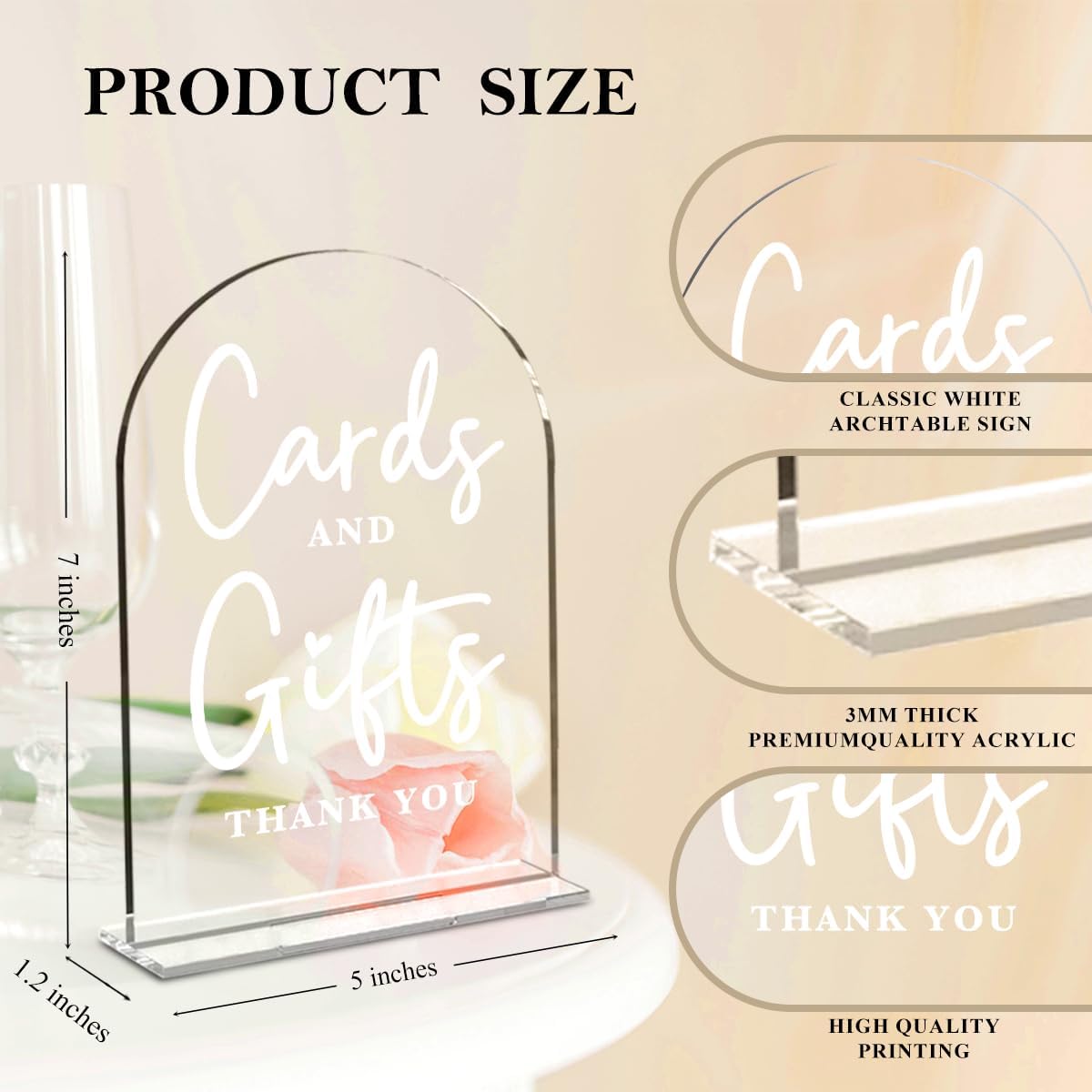 • 【Suitable Size】: Each wedding sign comes with a small acrylic base; the sign measures about 5 x 7 inches, and the acrylic base is about 4.3 x 1.4 inches. Each mirrored arch acrylic wedding sign has a protective film to prevent scratches, which should be torn off when ready to use.