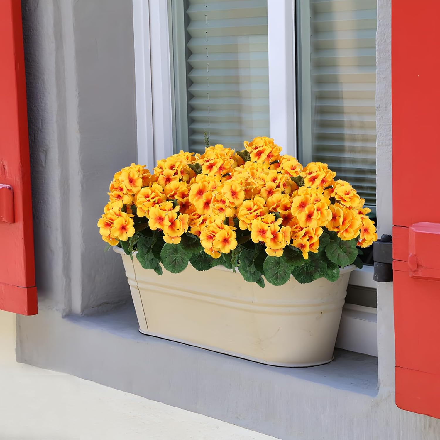Hananona Artificial Geranium Flowers for Outdoors Geranium Silk Flowers Outdoor UV Resistant Garden Plants Faux Flowers for Home Kitchen Table Centerpieces Decor (12, Yellow)