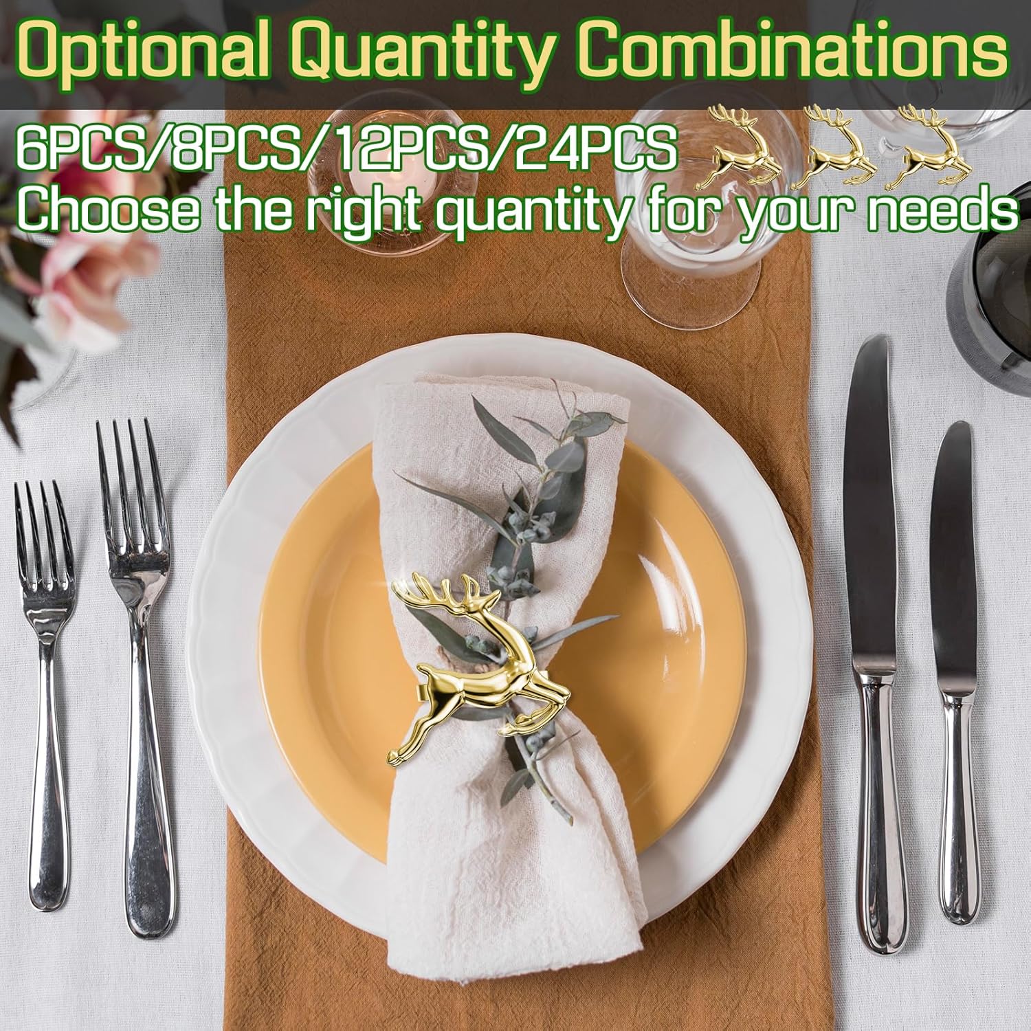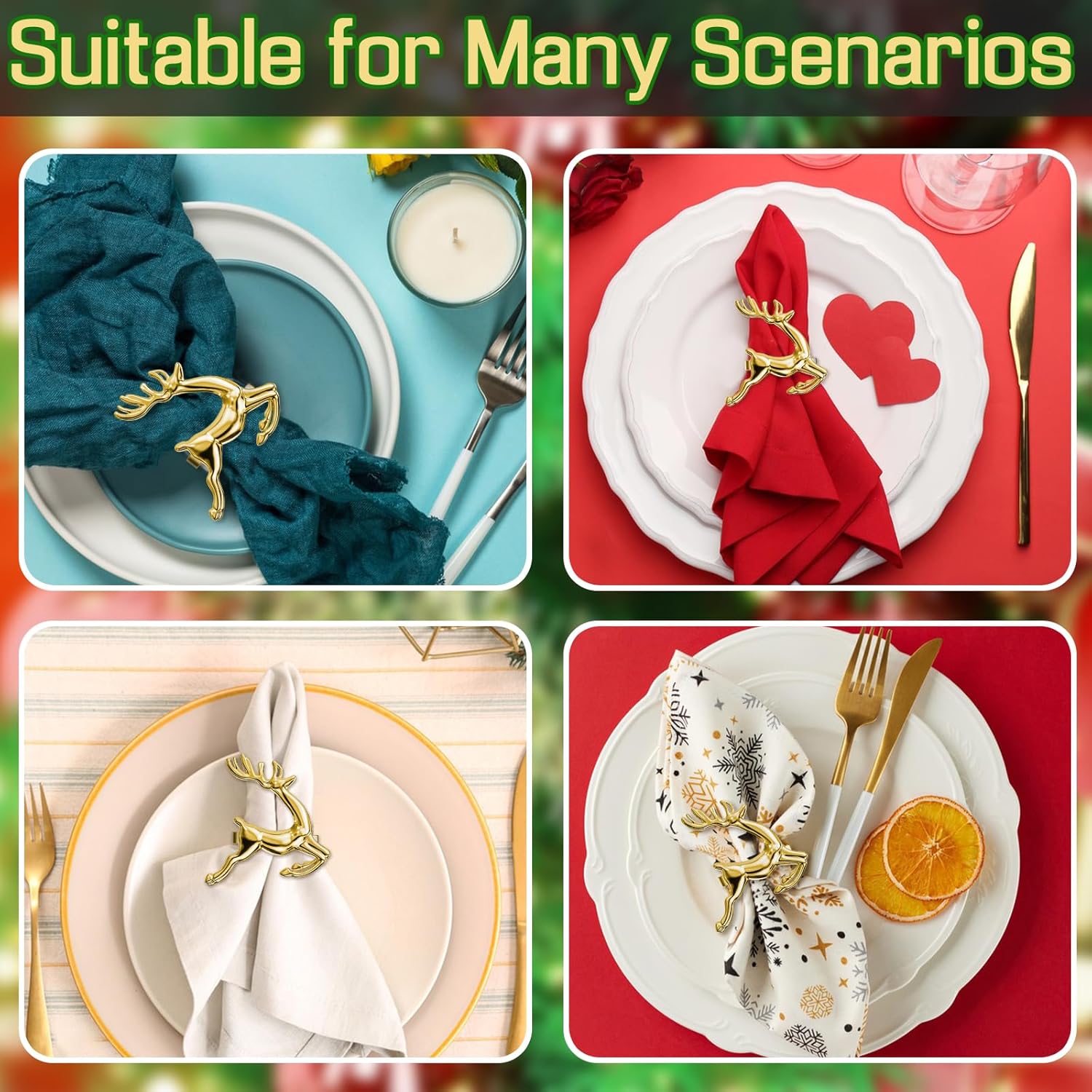 ZeeDix Gold Reindeer Christmas Napkin Rings Set of 24, Napkin Holder Ring for Christmas Dinner Table Decor Cloth Napkins, Wedding Receptions, Holiday Party, Banquet and Home Kitchen