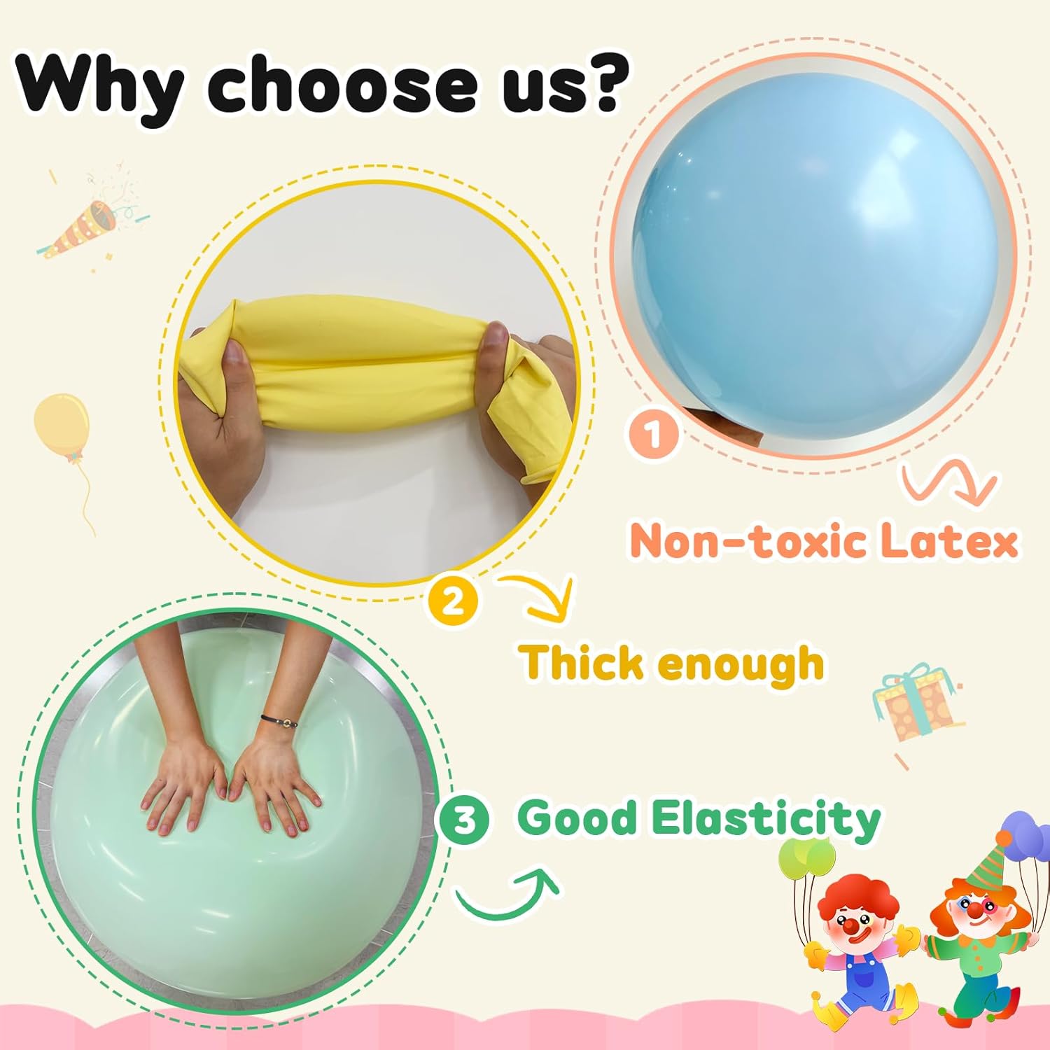 • 【Size& Quantity】Each sets contains 30pcs 18 inch large pastel colorful balloons. Big balloons are safe, heavy thick, bouncy and Eco-friendly latex material which is durable and long-lasting quality, these big round balloons thicker and much strong than typical balloons for longer lasting fun.