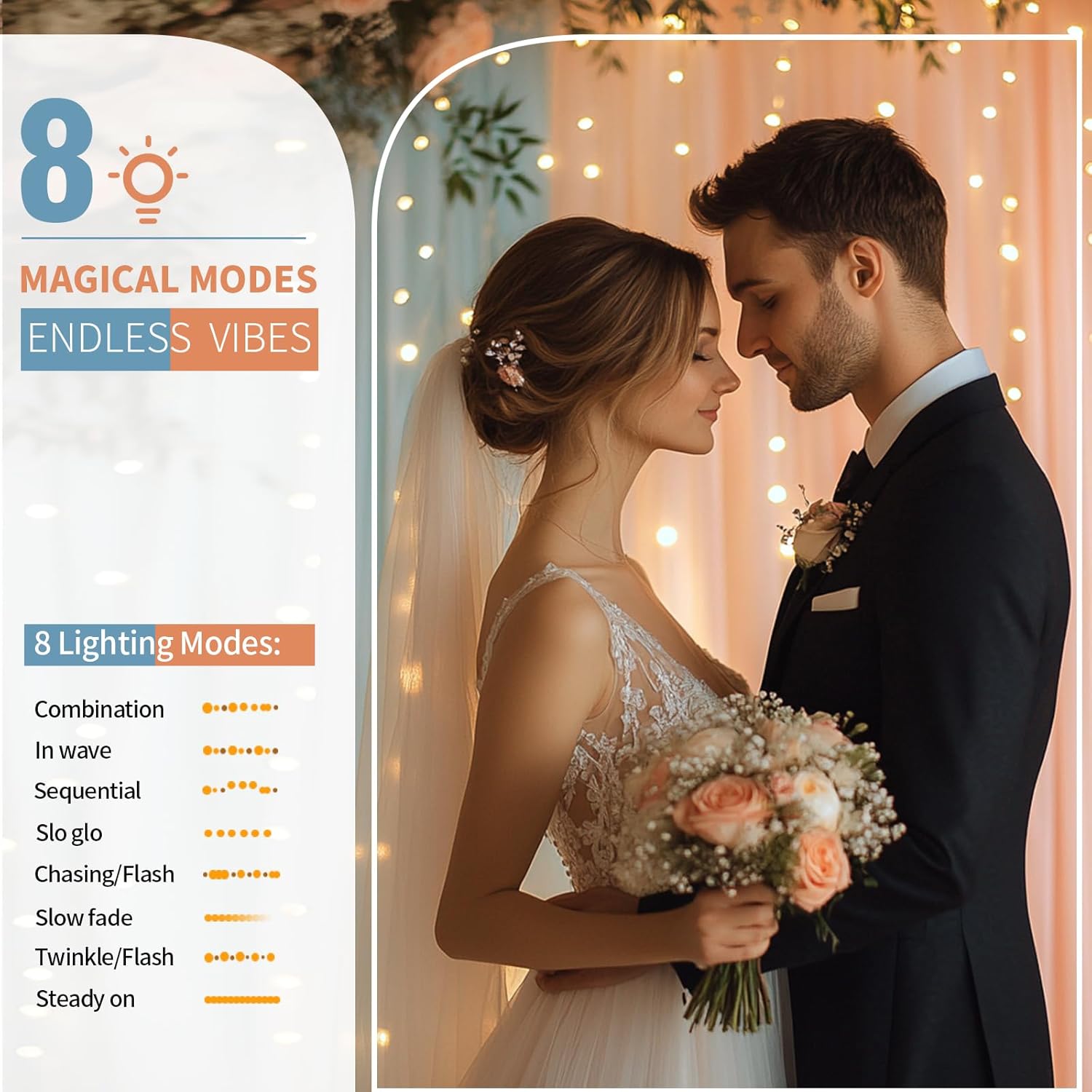 • Quick Setup in 3 Steps: 1. Hang curtains via rod pocket on any pipe/stand. 2. Attach lights using included clips before untying strands. 3. Plug USB into power bank/wall outlet – instant warm glow and choose from 8 lighting modes to create a romantic and magical atmosphere for any occasion! Tangle-free design saves 70% setup time