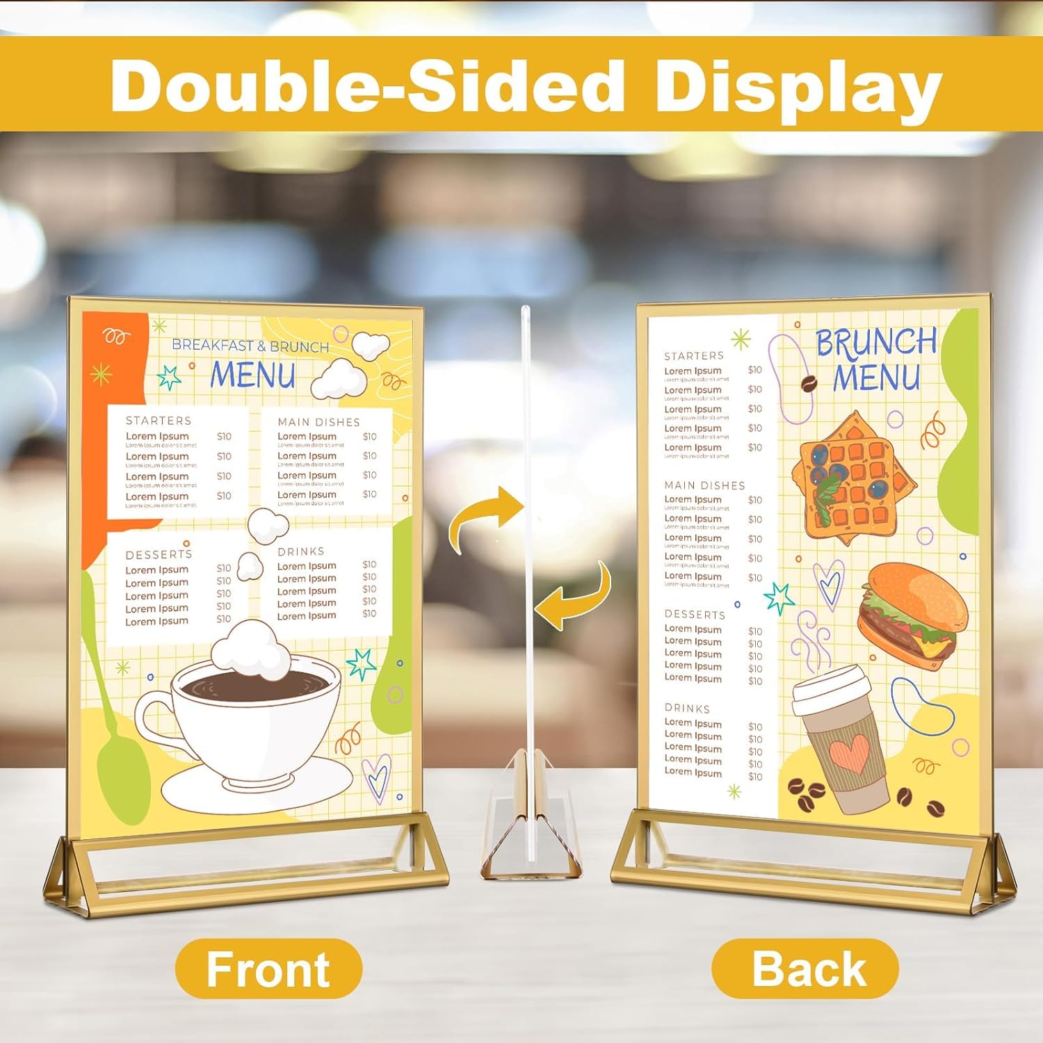 • Double Sided Display: This acrylic frame is designed with a vertical double sided stand that clearly and efficiently displays pictures and posters