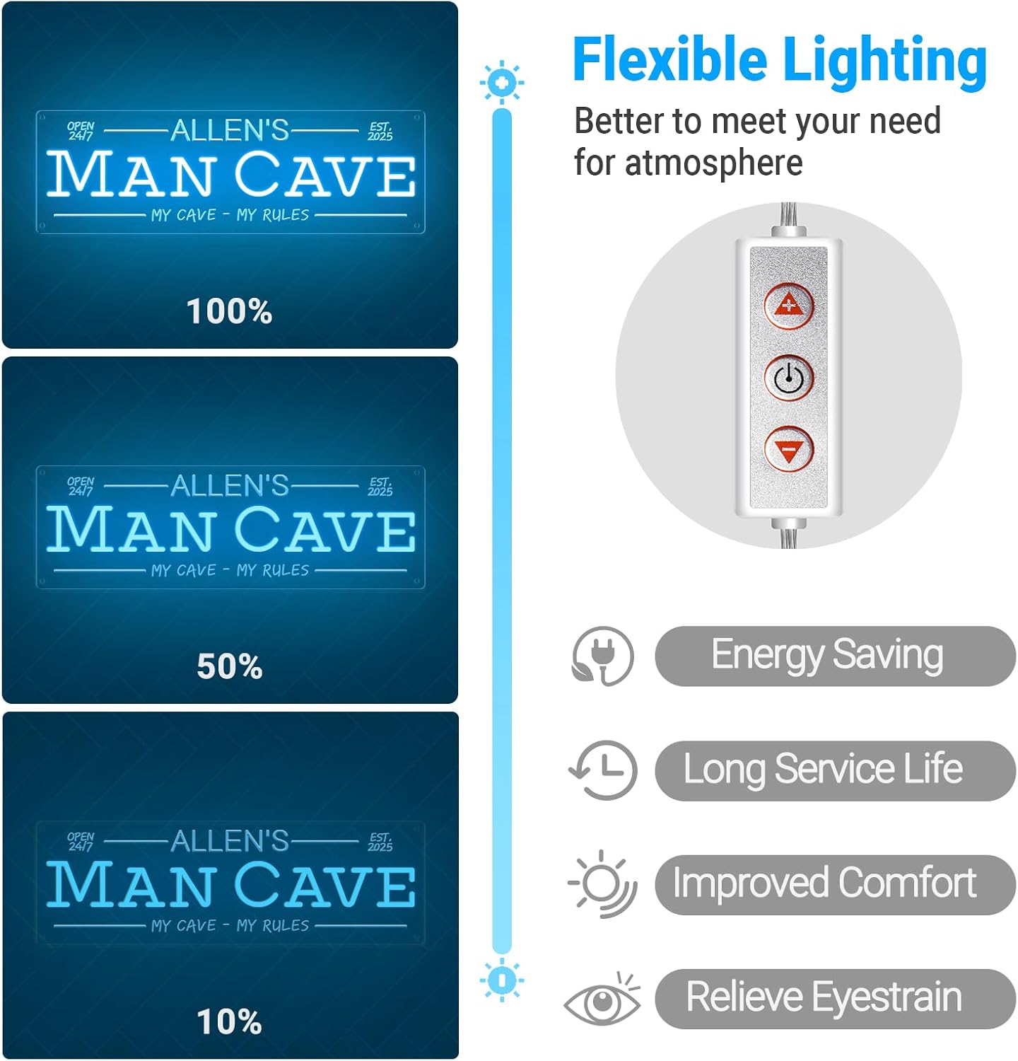 Custom Man Cave Neon Sign for Wall Decor, Personalized LED Neon Home Bar Name Signs, Dimmable Customizable Light Up Signs for Man Cave Lounge Basement Bar Tavern Bistro Business, Men Dad Gifts