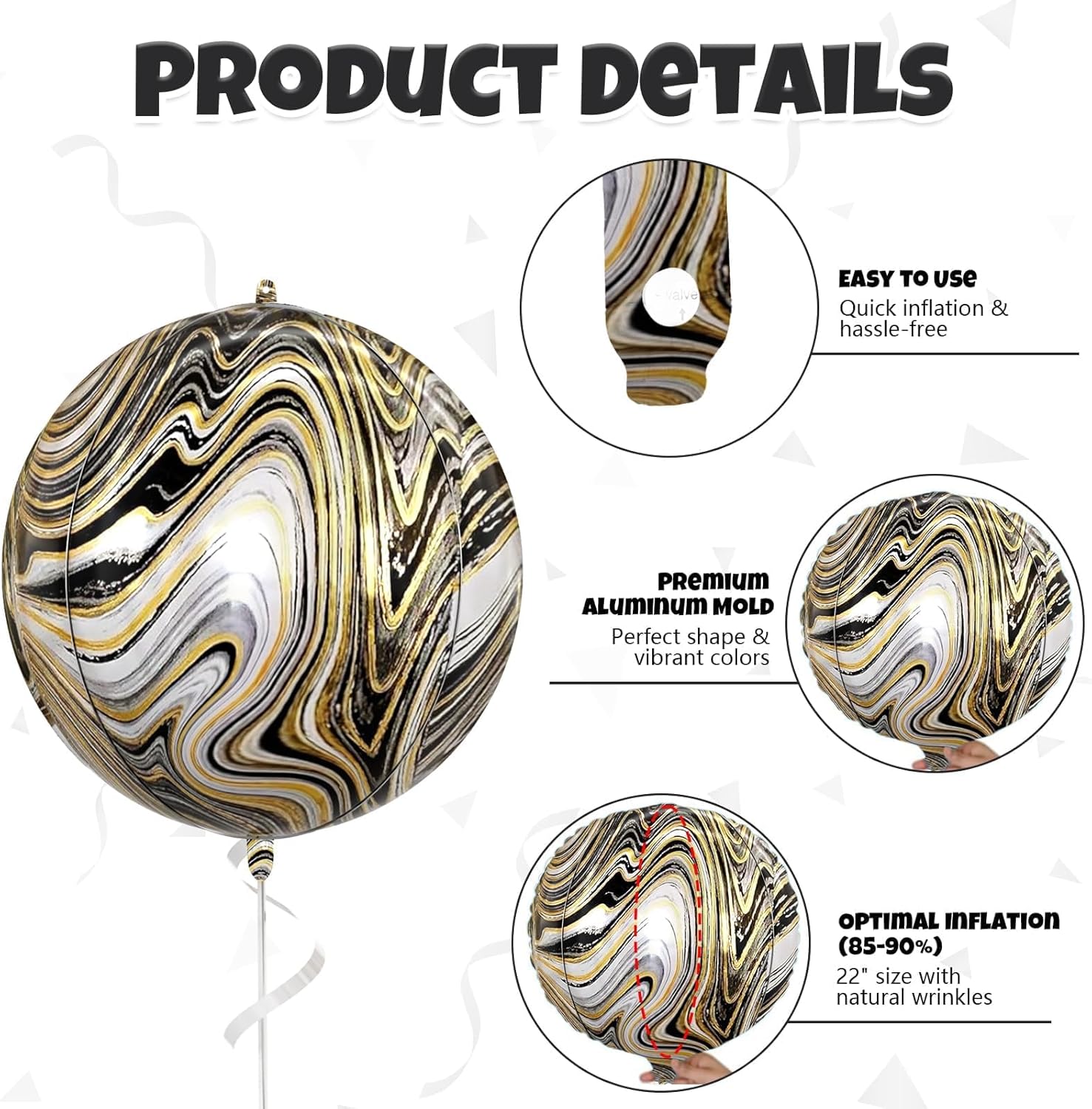 • Premium Quality – Made from high-grade metallic foil, these marble balloons are sturdy, reusable, and hold helium or air for long-lasting party decorations.