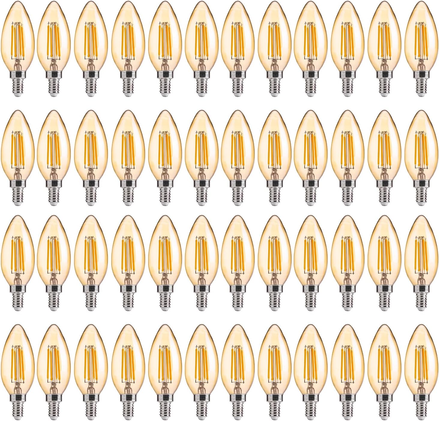 FLSNT Amber LED Candelabra Light Bulbs 40W Equivalent, B11 E12 LED Chandelier Bulbs, 2200K Warm White, Dimmable, 330LM, 48 Pack UL,CA65 Listed.