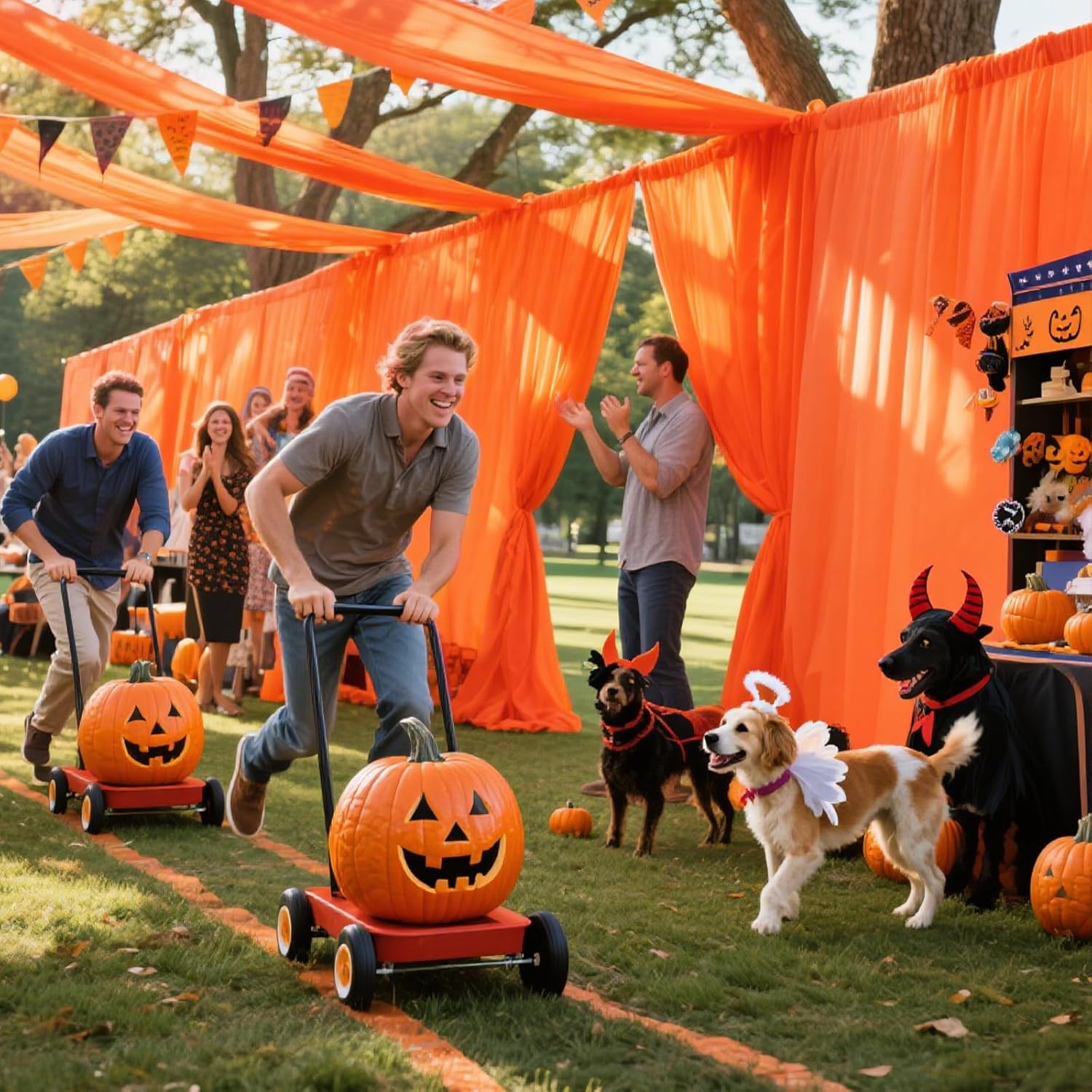 VOK Orange Wedding Arch Draping Fabric Chiffon Fabric, 29in x 18Ft 2 Panels Sheer Chiffon Outdoor Curtain for Wedding Ceremony Birthday Party Decoration (Orange,2 Panel)