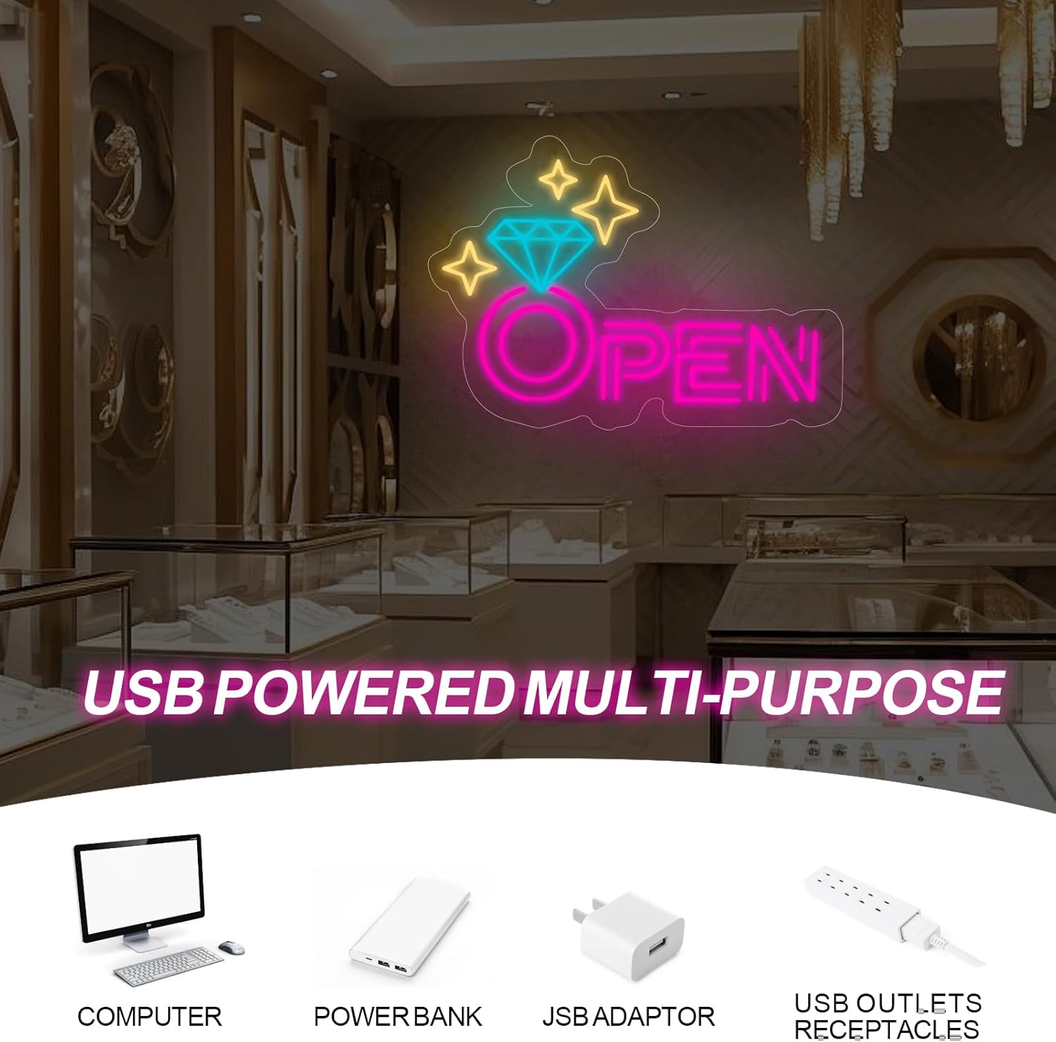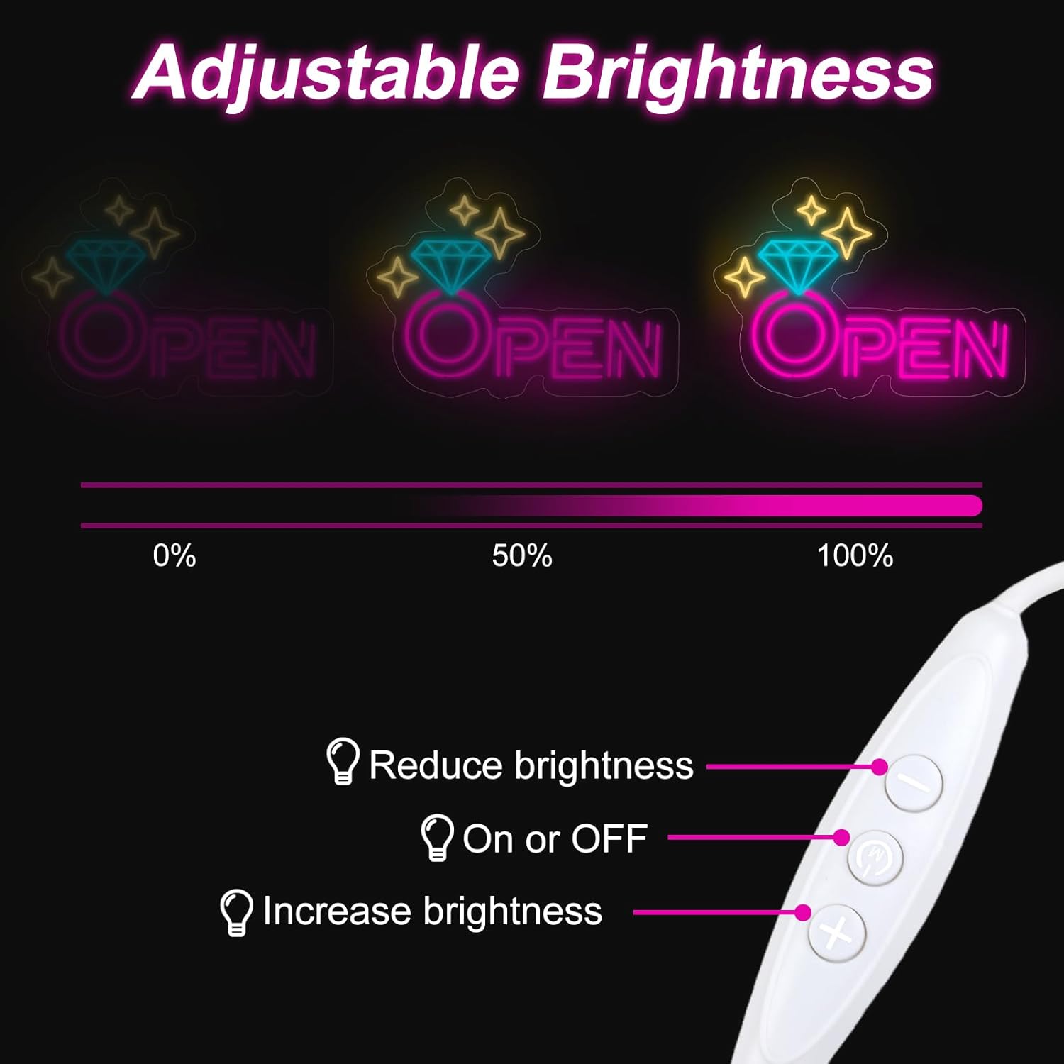 • What you get: Diamond open neon sign x1, hanging chain x1, wall hooks x2. Every LED light undergoes rigorous quality checks before it ships. If you have any problem with our neon light, please feel free to contact us. We will try our best to serve you