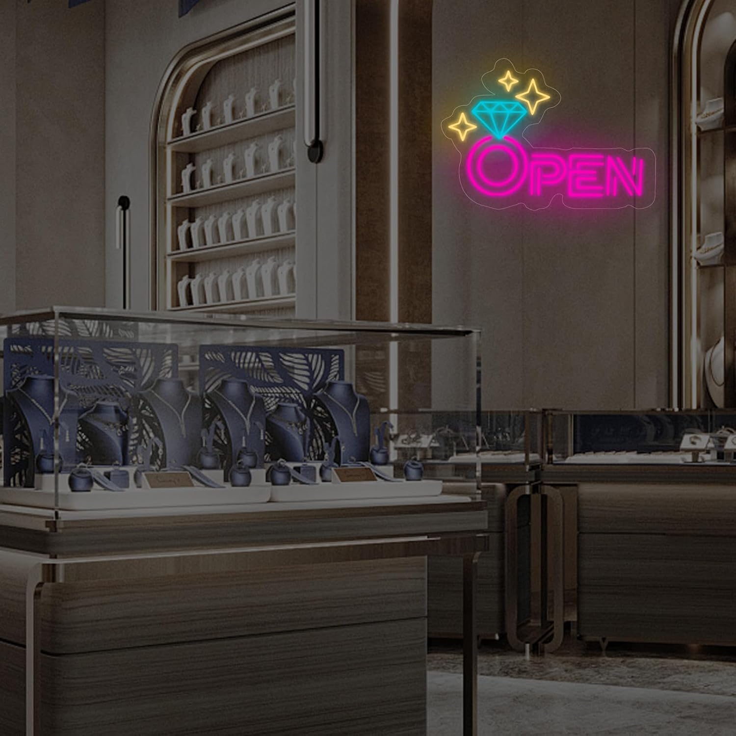 Diamond Open Indoor Neon Sign For Jewelry Store Custom Led Neon Sign Business Decor Store Decor Diamond LED Light Wall Art Decoration, 16.5"x11", Pink