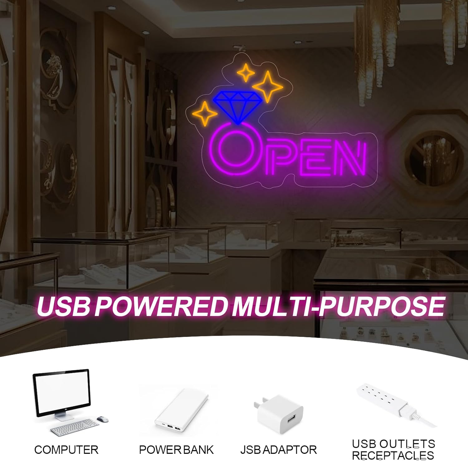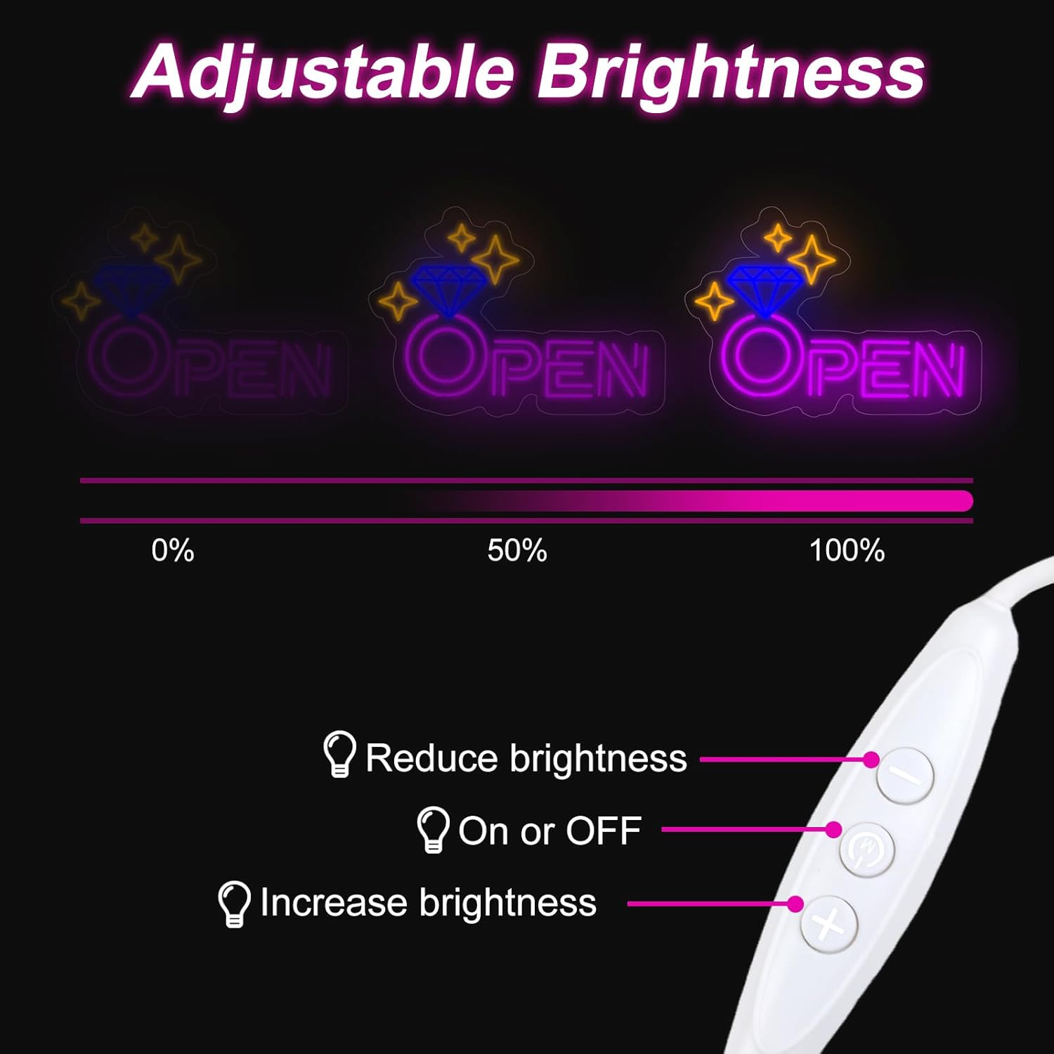 • What you get: Diamond open neon sign x1, hanging chain x1, wall hooks x2. Every LED light undergoes rigorous quality checks before it ships. If you have any problem with our neon light, please feel free to contact us. We will try our best to serve you