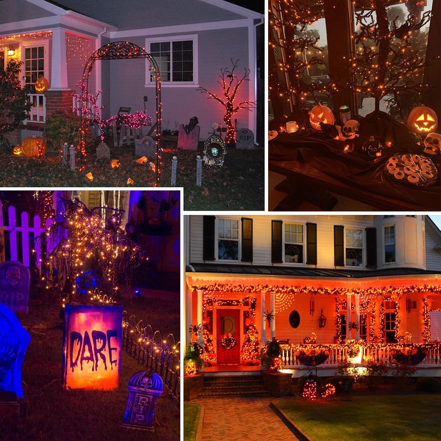 • Halloween Fairy Lights Plug in 66 FT 200 LED: Upgraded brightness 200LED 66ft string lights, orange, IP44 waterproof, UL588 approved, 8 modes, copper wire, with timer function, beautiful twinkle lights for indoor and outdoor use, perfect Halloween decorations, great ideal for party, wedding, birthday, Thanksgiving, Halloween, Christmas, etc.