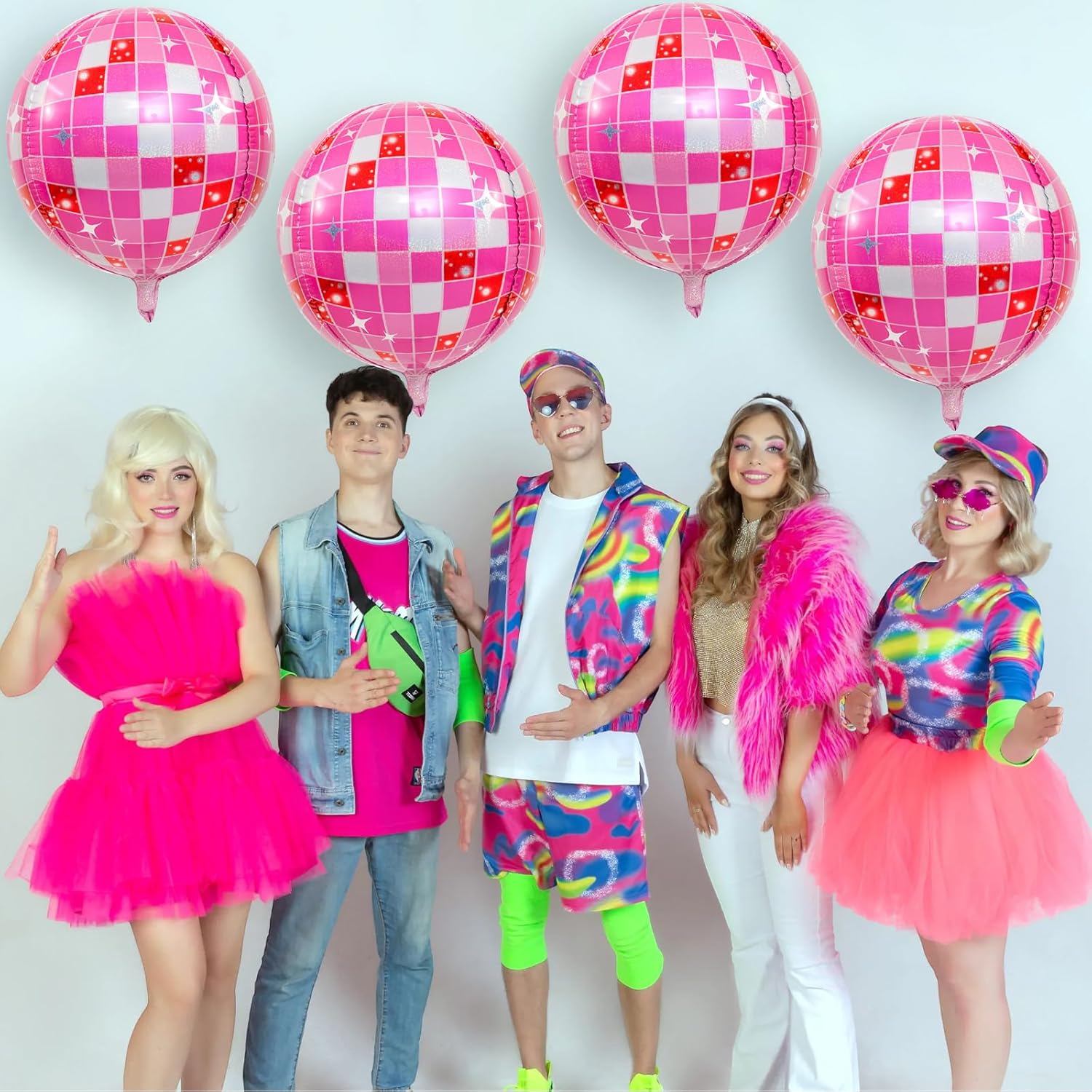 Disco Ball Balloons Pink 4PC,Foil Disco Balloons 22 Inch 4D Round Pink Balloon for 70s 80s Birthday Bachelorette Graduation Decorations