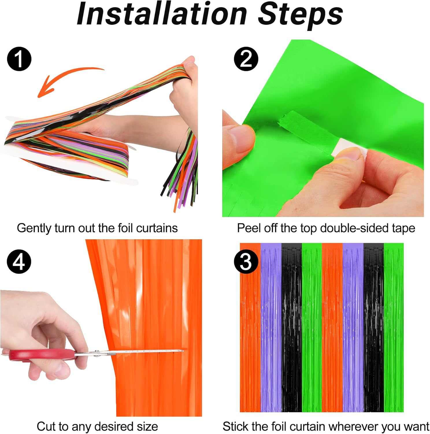• Easy to Install: These Halloween fringe curtains have adhesive paper on the top, just peel the paper off and stick it where you need it, then cut it to the size you need.