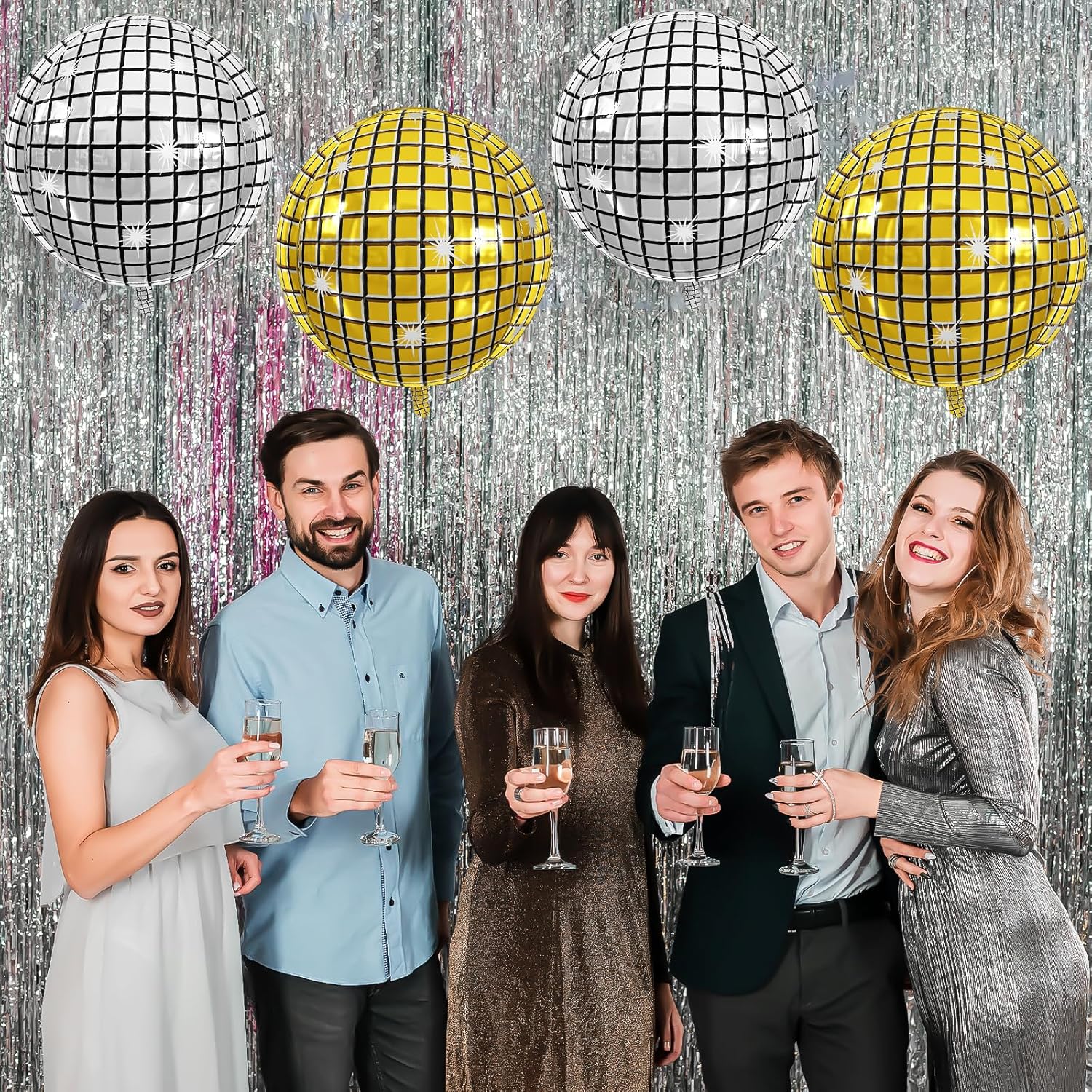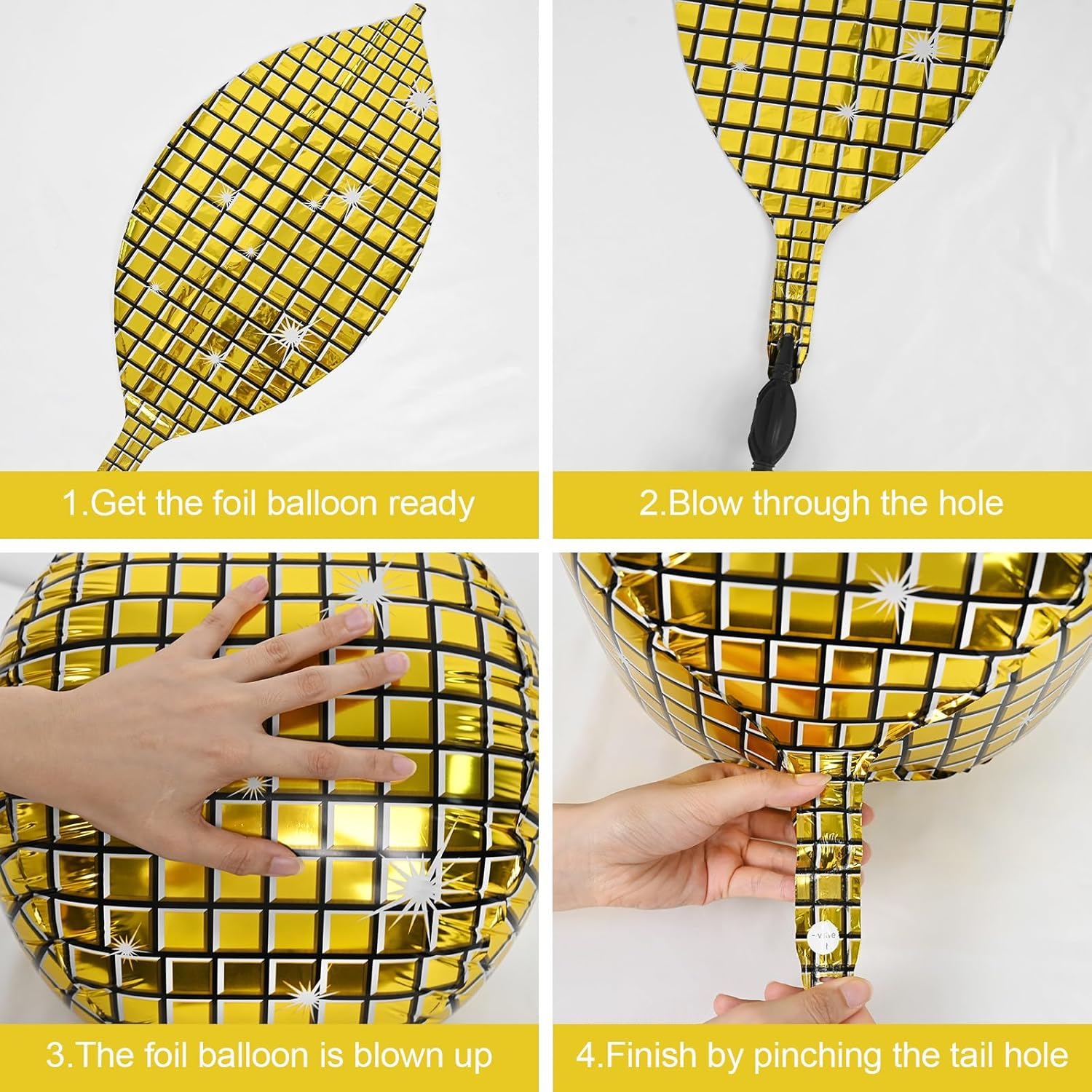 • EASY TO USE:These gold silver disco ball decorations balloons can be filled with air or helium.pinch the inflation port of the disco balloon to seal it.the set comes with a straw and ribbon,after the party is over,use the straw to deflate by inserting it into the inflation port,balloons can be reused