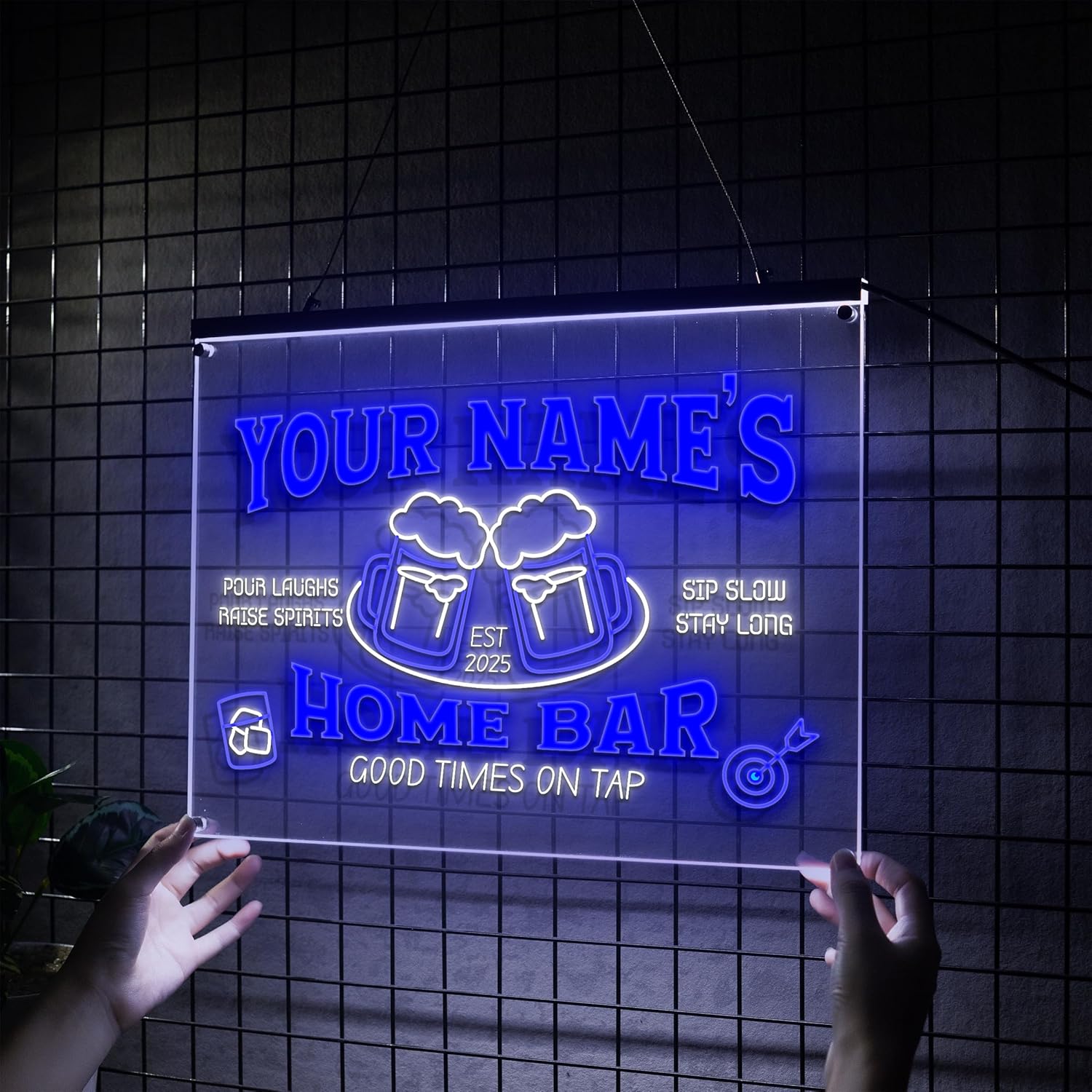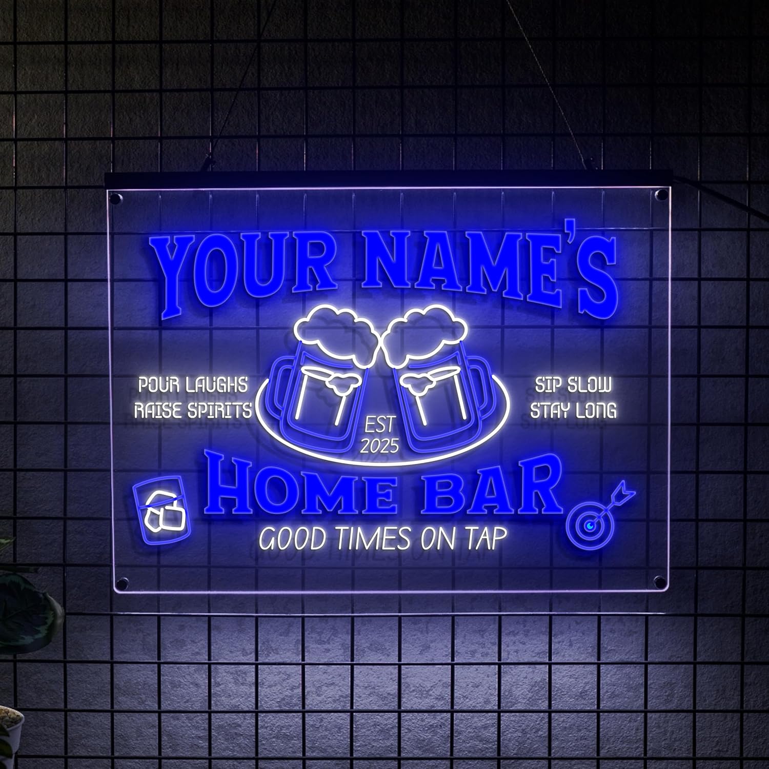 • Wide range of customizable bar signs for every space and mood. Choose from 1 or 2 color personalized neon bar signs, perfect for any custom pub sign or personalized beer sign. Available in 6 LED colors—blue, green, yellow, red, pink, and white. Each sign supports up to 2 colors, letting you personalize your home bar with the perfect mix.