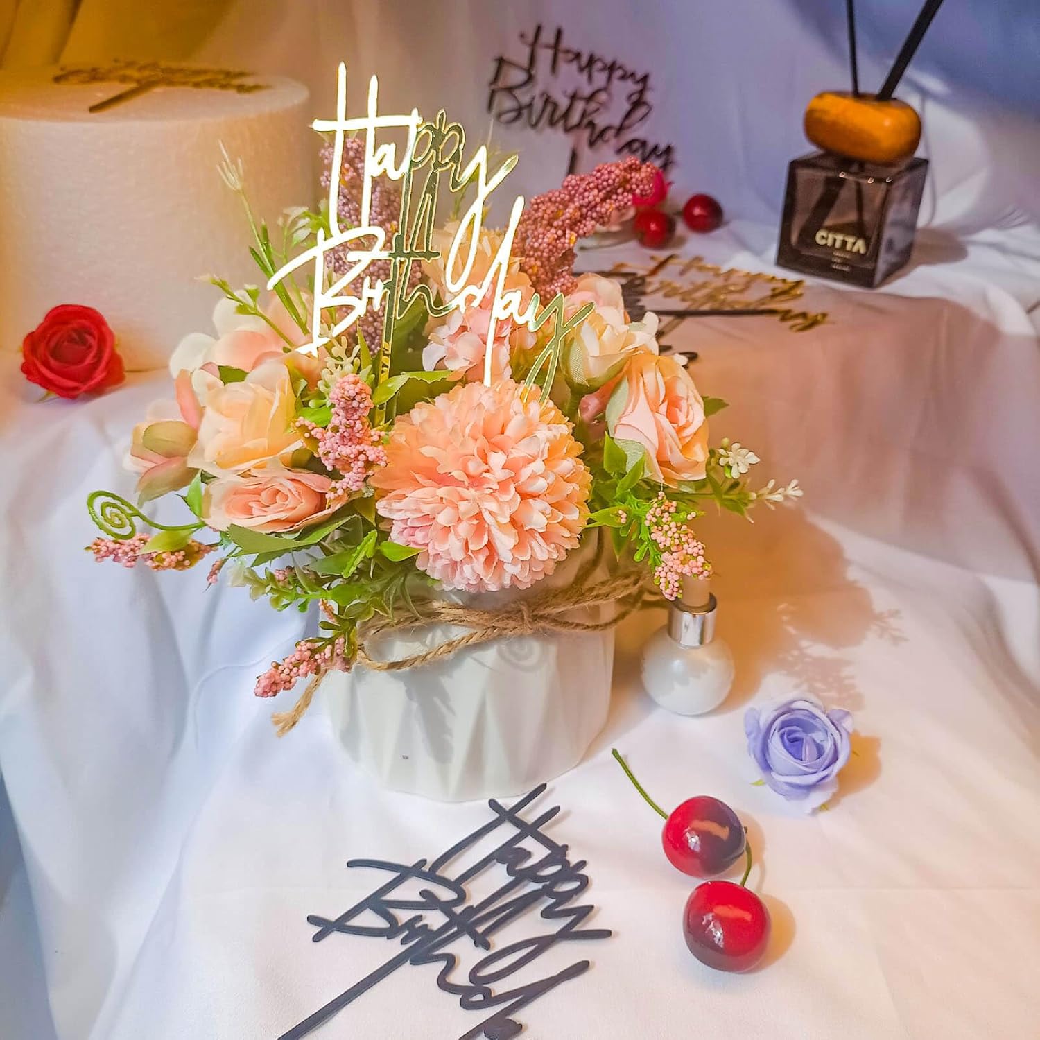 • 📏 【Ideal Size for Any Cake】 Measuring 5.3" x 3.9", this happy birthday cake topper fits most cakes, cupcakes, and even dessert tables. Great for parties, weddings, or floral arrangements