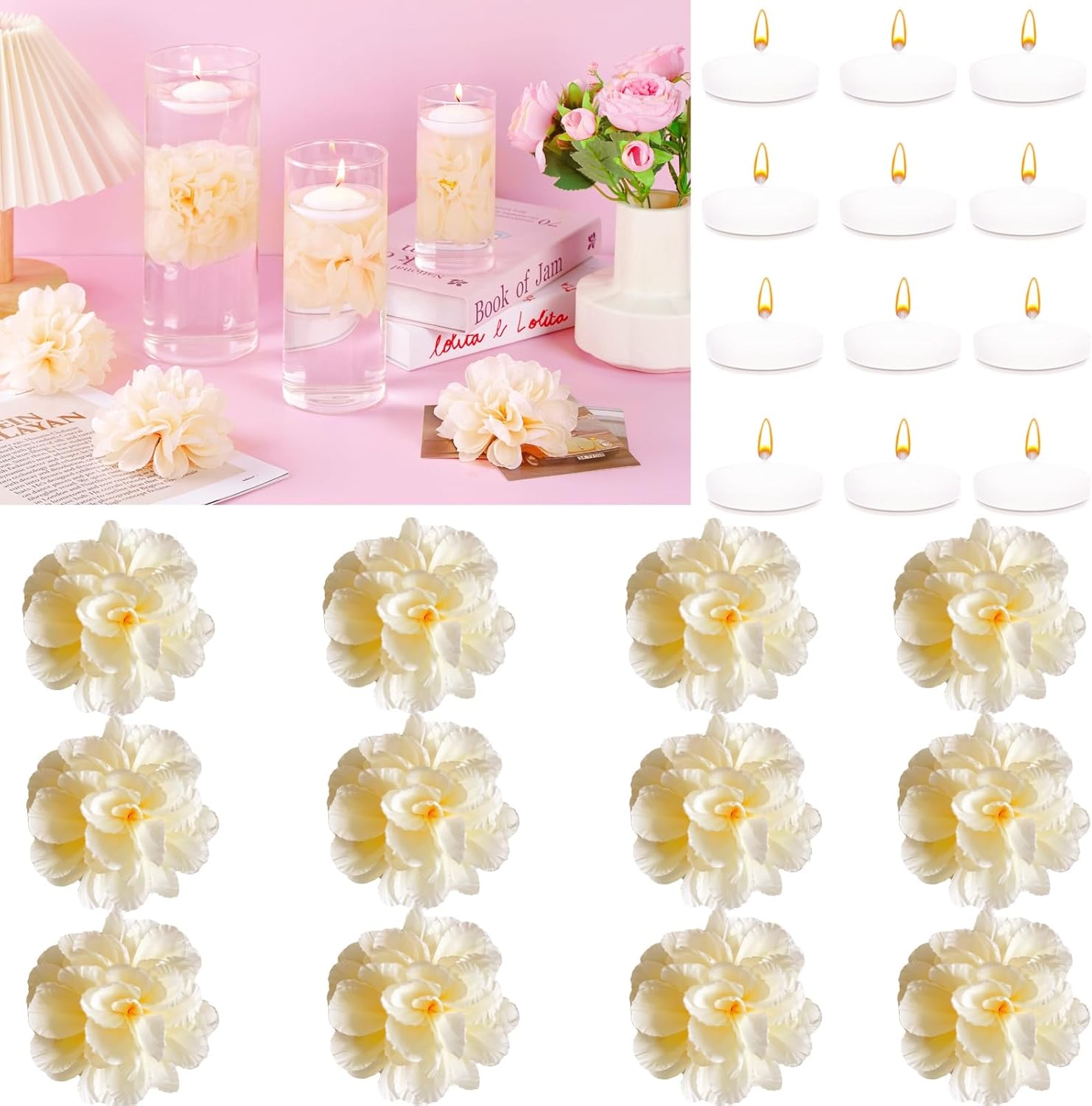 • 24-PCS MATCHED FLOATING SET: This combo include 12 pcs artificial flower and 12 pcs floating candles. Champagne flowers’ soft texture and vibrant colors complement the candles’ warm glow, saving you the trouble of matching separate items