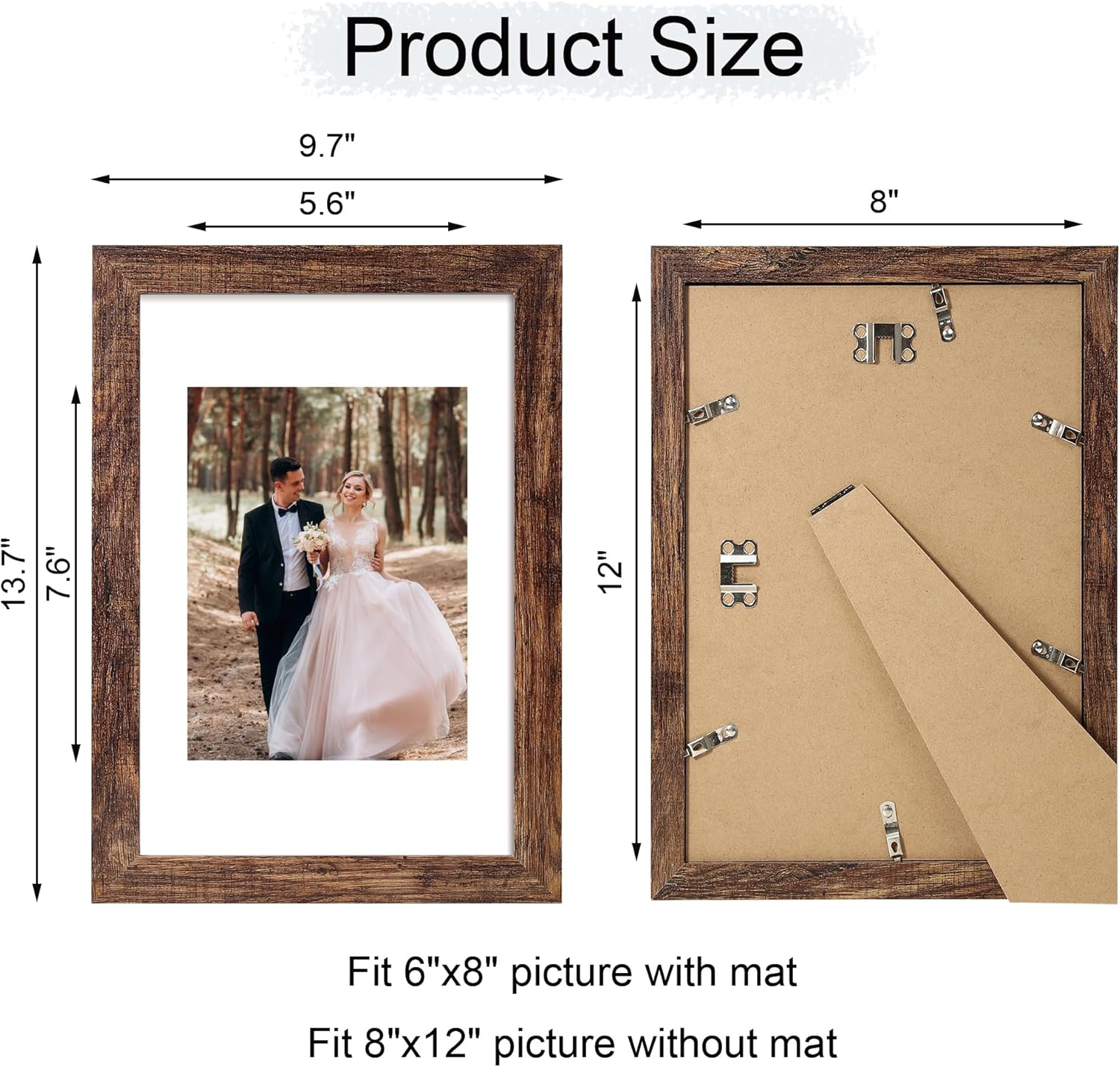 • Multi Frames Collage Set: Includes 4 frames in the same size. Perfectly fits 6x8 inch pictures with mat or 8x12 inch without mat. The frame opening display size is 0.5 inches smaller than the photo size for secure mounting.