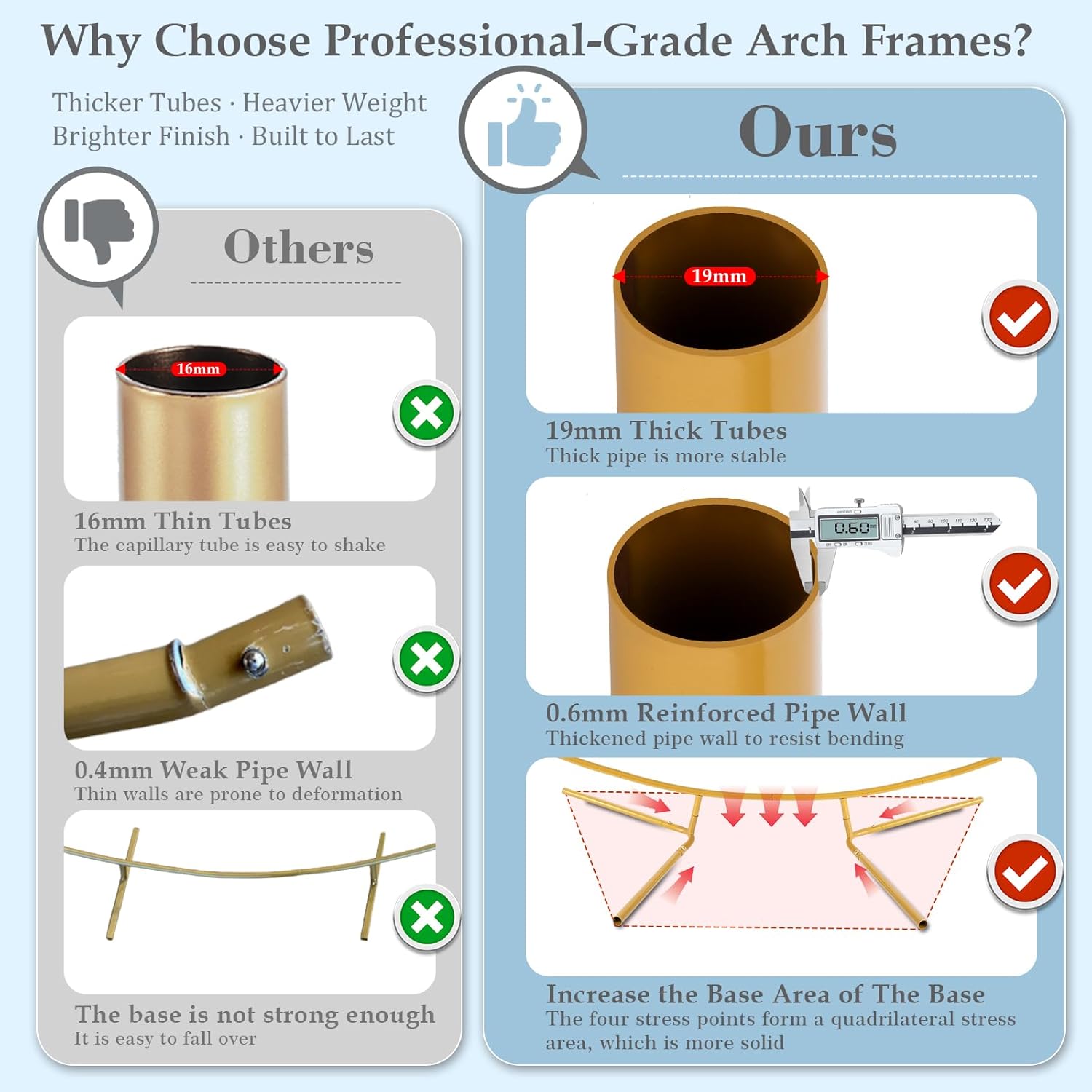 • Upgraded Base Design & Thickened Metal Pipe: Experience superior stability with our premium metal round backdrop stand. Crafted from thick, 19mm diameter rust-proof tubing (0.6mm wall thickness) – significantly sturdier than standard 15mm tubes – while its engineered base expands the stress area via four optimized weight distribution points, ensuring your wedding arch stand remains flawlessly secure and wobble-free throughout any event.
