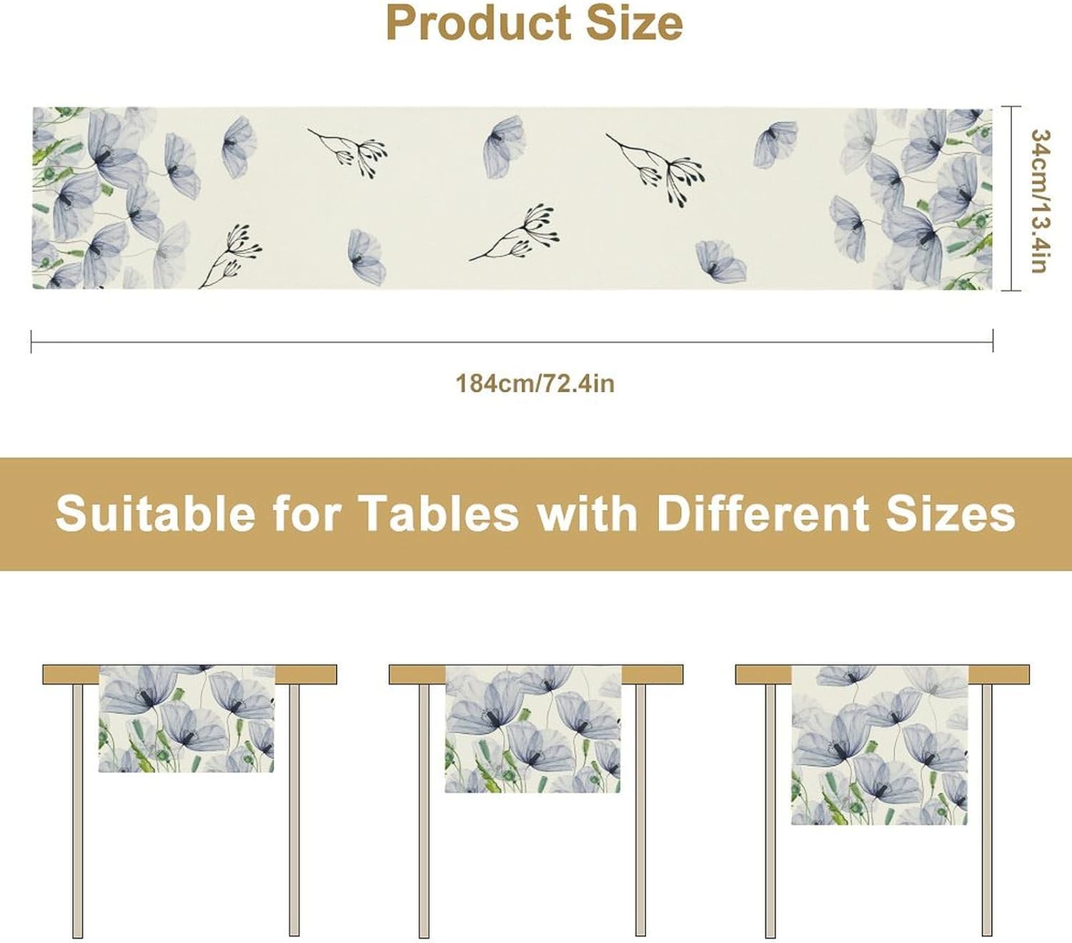 • Package:Each package 1 Table Runner, measures Length: 90 inch, Width: 13 inch.