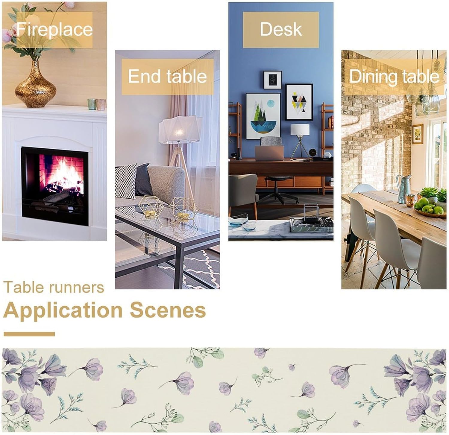Poppy Flower Table Runner, Watercolor Purple Floral Leaves Seasonal Spring Summer Table Runner for Kitchen Dinning Table Runner Decor Home Wedding Party Holiday, 13x36 Inch