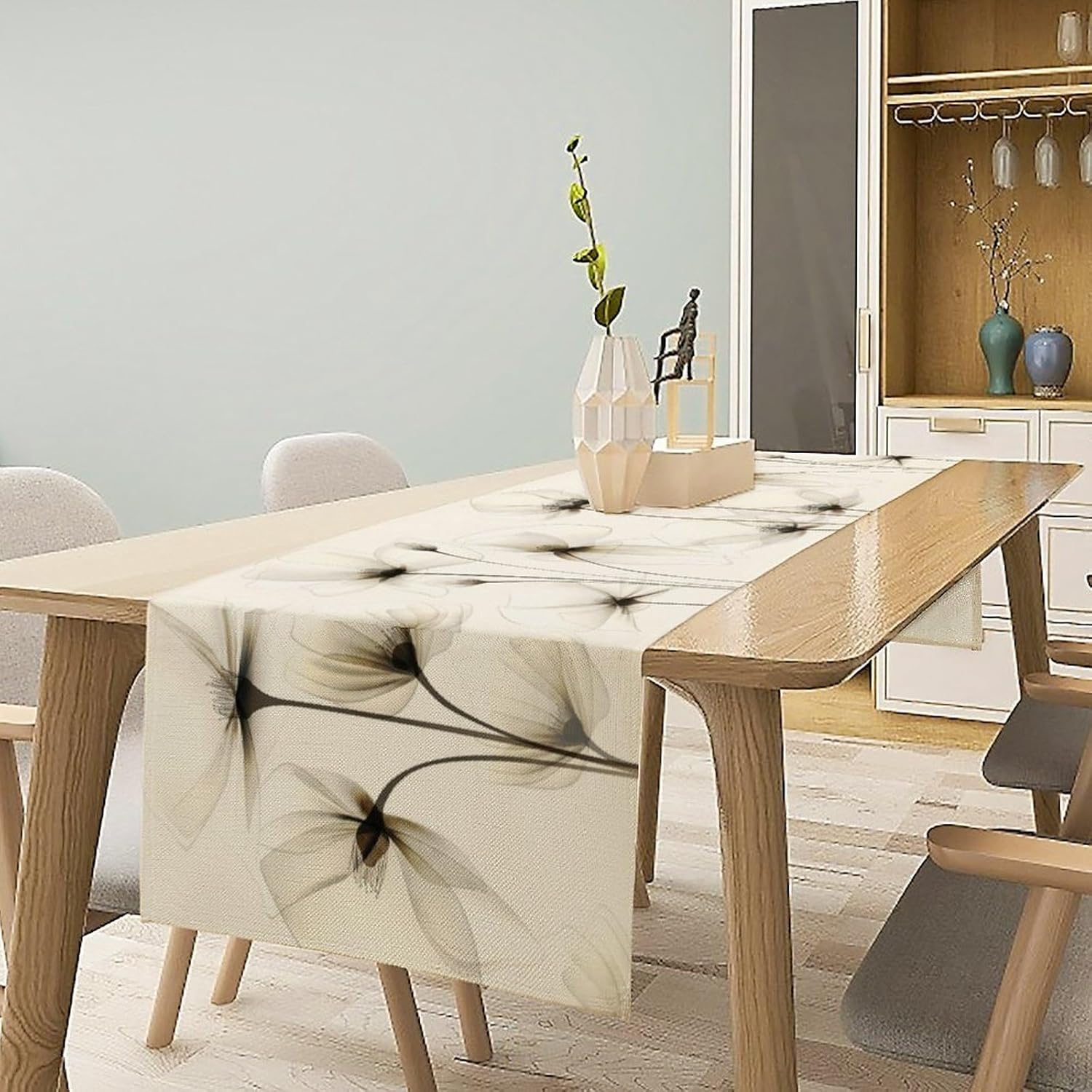 Abstract Floral Table Runner, Watercolor Transparent Beige Poppy Flowers Print Kitchen Dinning Table Runner for Indoor Outdoor Home Wedding Party Holiday, 13x108 Inch