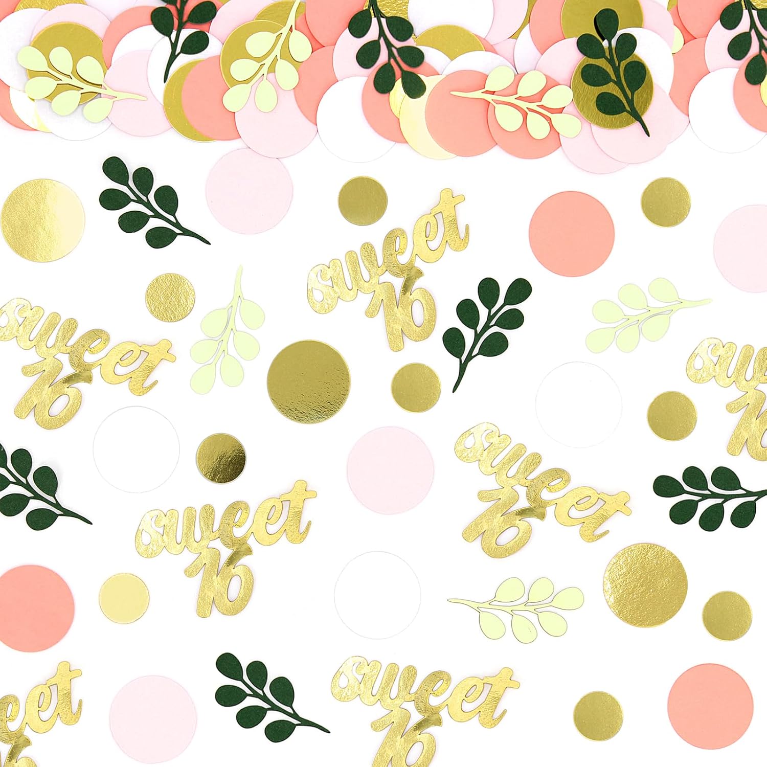 • 1.Great Pink and Green 16th Birthday Decorations for girls.The sweet 16 birthday confetti is elegant,featured with mix designs,perfect for the girl happy 16th birthday decorations.